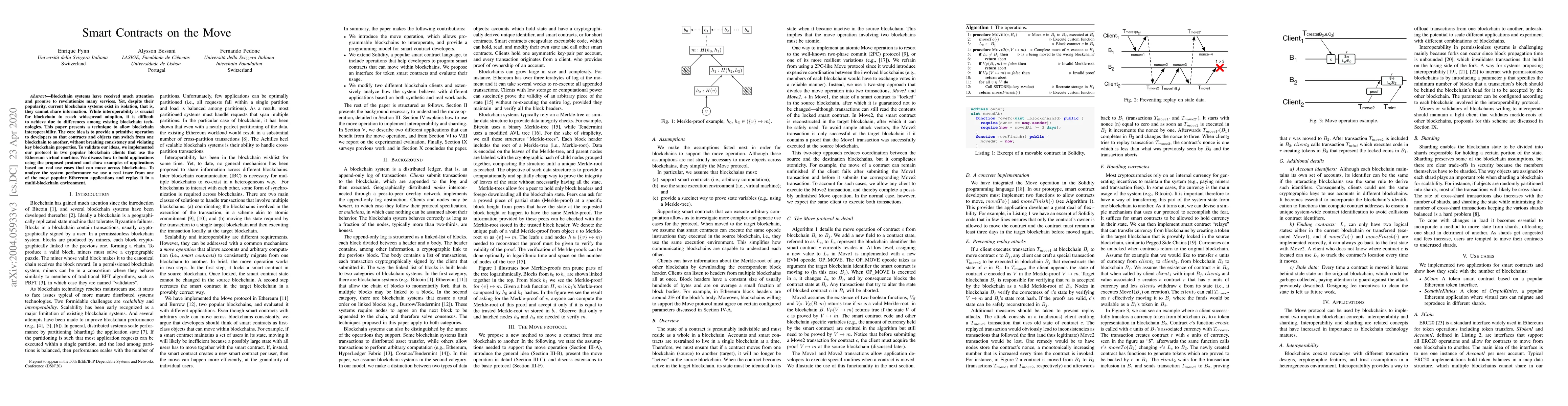 Blockchain systems have received much attention and promise to revolutionize many services. Yet, despite their popularity, current blockchain systems exist in isolation, that is, they cannot share information. While interoperability is crucial for blockchain to reach widespread adoption, it is difficult to achieve due to differences among existing blockchain technologies. This paper presents a technique to allow blockchain interoperability. The core idea is to provide a primitive operation to developers so that contracts and objects can switch from one blockchain to another, without breaking consistency and violating key blockchain properties. To validate our ideas, we implemented our protocol in two popular blockchain clients that use the Ethereum virtual machine. We discuss how to build applications using the proposed protocol and show examples of applications based on real use cases that can move across blockchains. To analyze the system performance we use a real trace from one of the most popular Ethereum applications and replay it in a multi-blockchain environment.