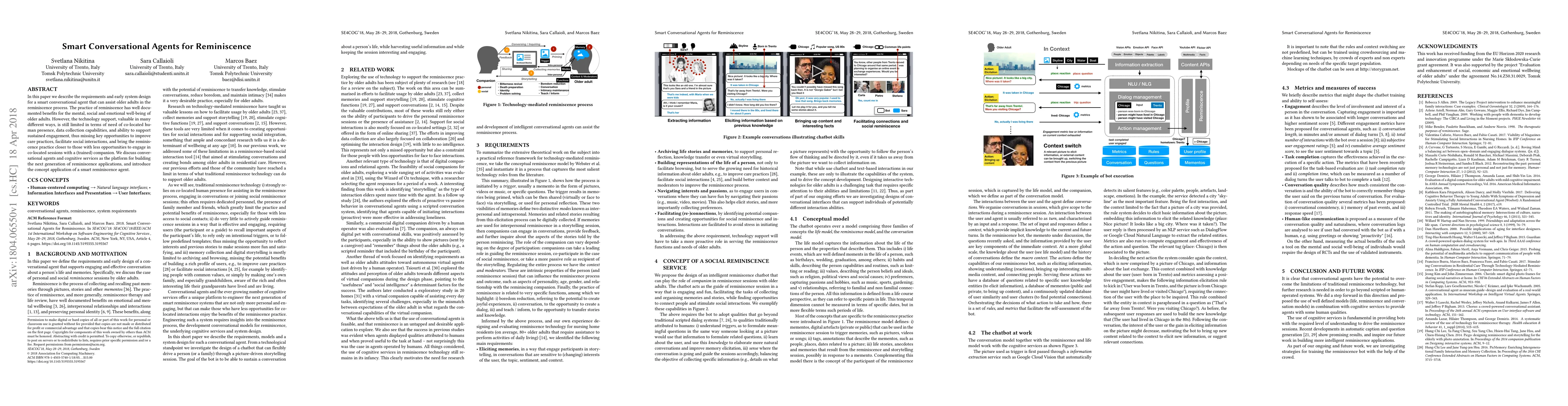 This paper outlines the design of a smart conversational agent aimed at aiding older adults in reminiscence, highlighting the benefits of such technology for mental, social, and emotional well-being. It addresses current limitations in technology support and proposes a next-generation application to enhance care practices and social interactions.