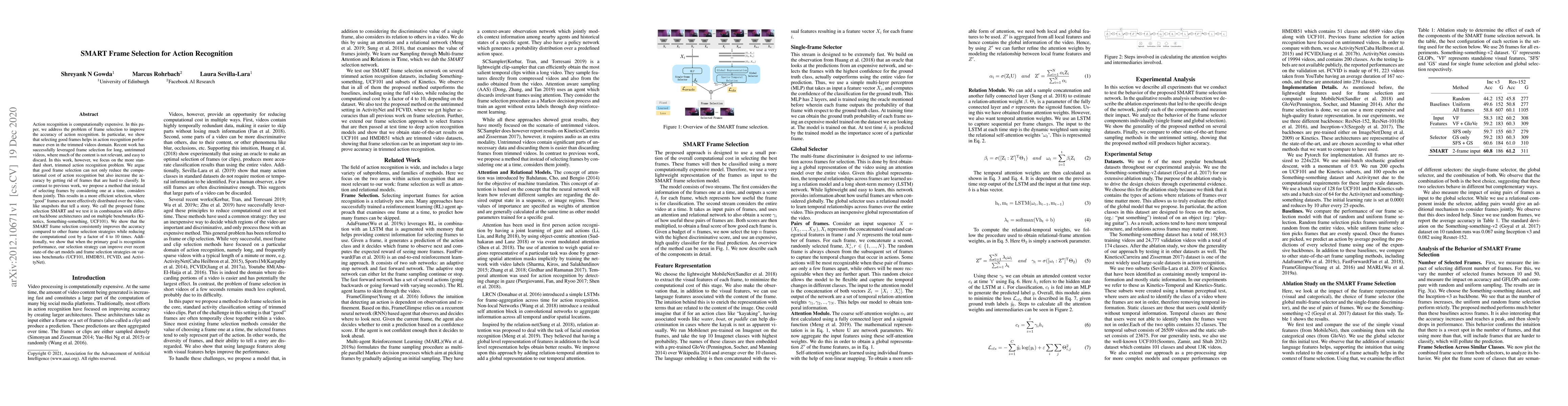 This paper proposes a SMART frame selection method to enhance action recognition accuracy in trimmed videos, reducing computational costs by selecting frames jointly rather than individually. The method improves recognition performance and reduces computational cost by a factor of 4 to 10 times compared to other strategies, outperforming recent state-of-the-art models on multiple benchmarks.