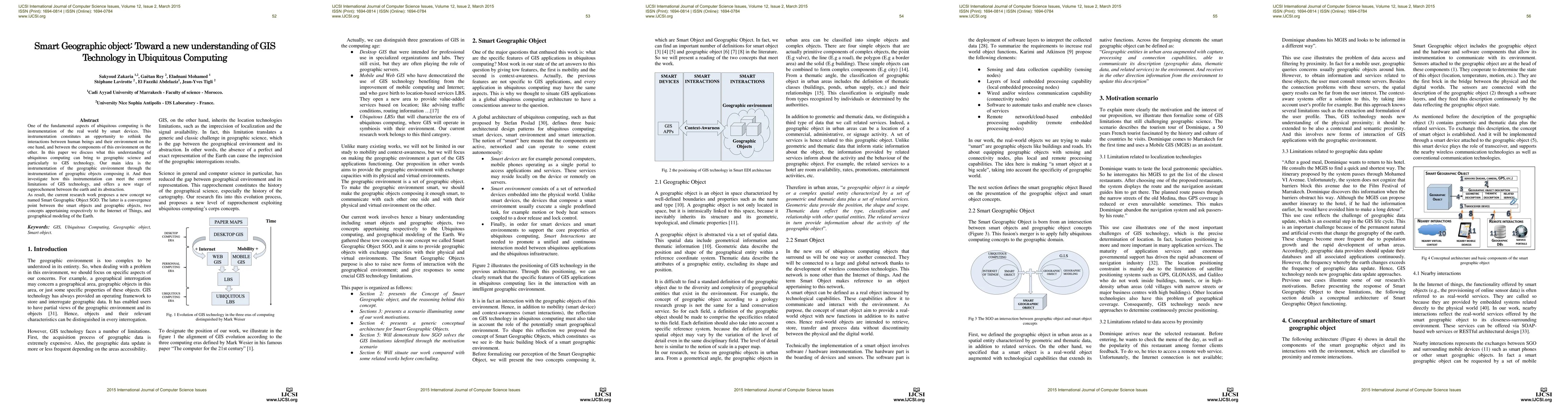 Summary: This paper explores how ubiquitous computing can enhance geographic information systems (GIS) by instrumenting geographic objects, thereby bridging the gap between real-world environments and their digital representations. The proposed concept, Smart Geographic Object (SGO), aims to address current GIS limitations and foster a closer integration between physical and abstract geographic spaces.
