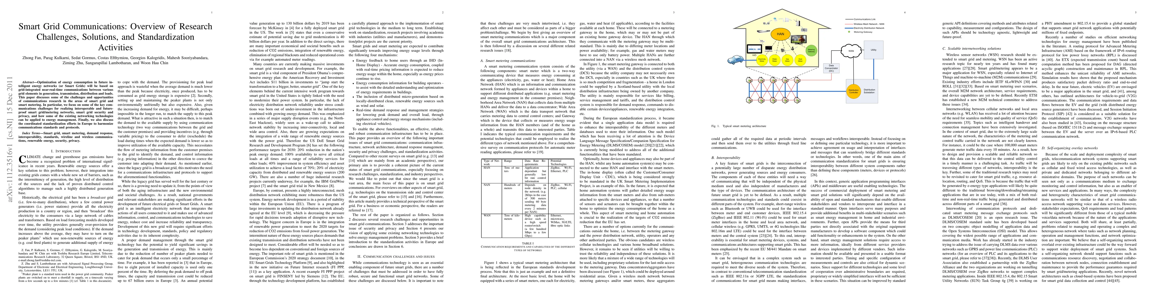 This paper explores the communications challenges in smart grid networks, including interoperability, security, and privacy, and discusses how existing technologies can aid energy management. It also highlights European efforts to standardize communications protocols for smart grids.