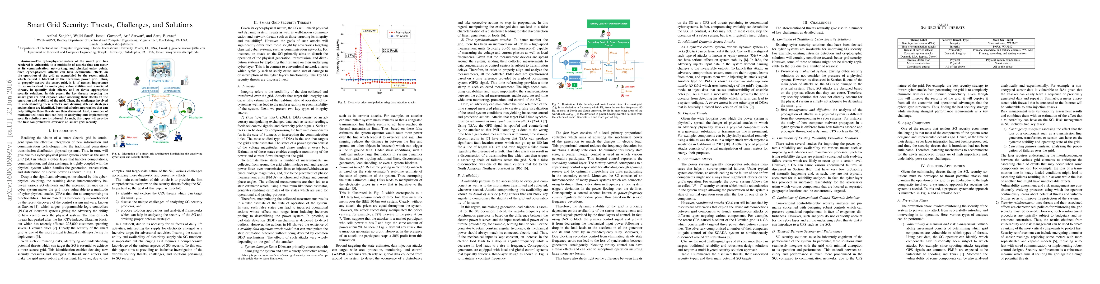 This paper examines the vulnerabilities and threats faced by the smart grid, analyzing the impact of cyber-physical attacks and outlining challenges in securing it. It proposes potential solutions and introduces mathematical tools for analysis and implementation, aiming for a comprehensive overview of smart grid security.
