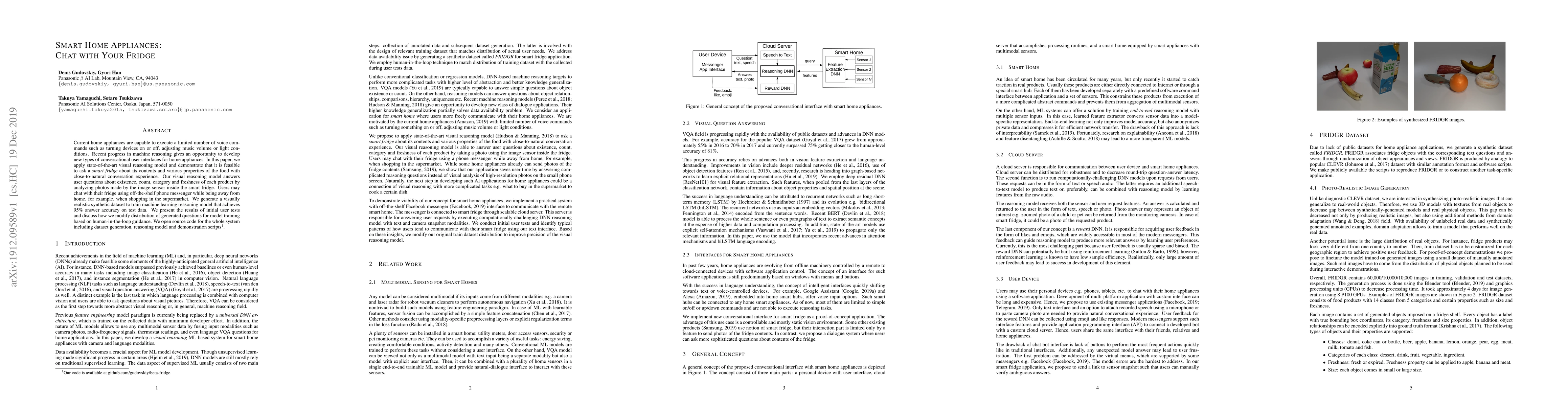 This paper explores developing conversational interfaces for smart home appliances, specifically a smart fridge, using advanced visual reasoning models. The system enables users to inquire about fridge contents and food properties via natural language, achieving 95% accuracy, and is demonstrated through user tests.