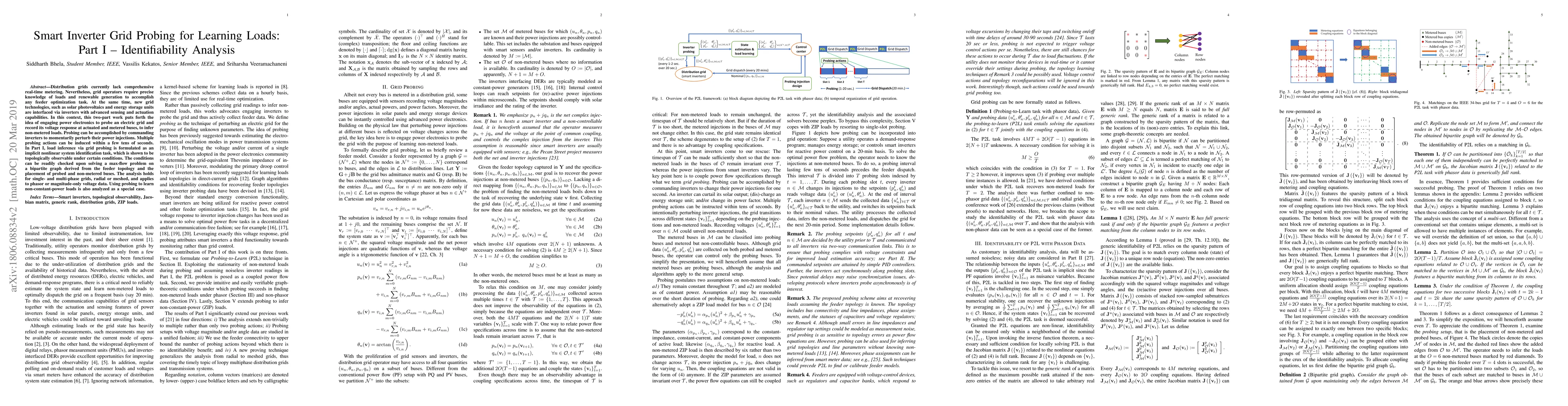 This paper proposes using smart inverters to probe distribution grids to infer non-metered loads by perturbing power injections. It demonstrates that grid probing can be formulated as an implicit nonlinear system identification task, which is topologically observable under certain conditions, checked via a max-flow problem on a derived bipartite graph.