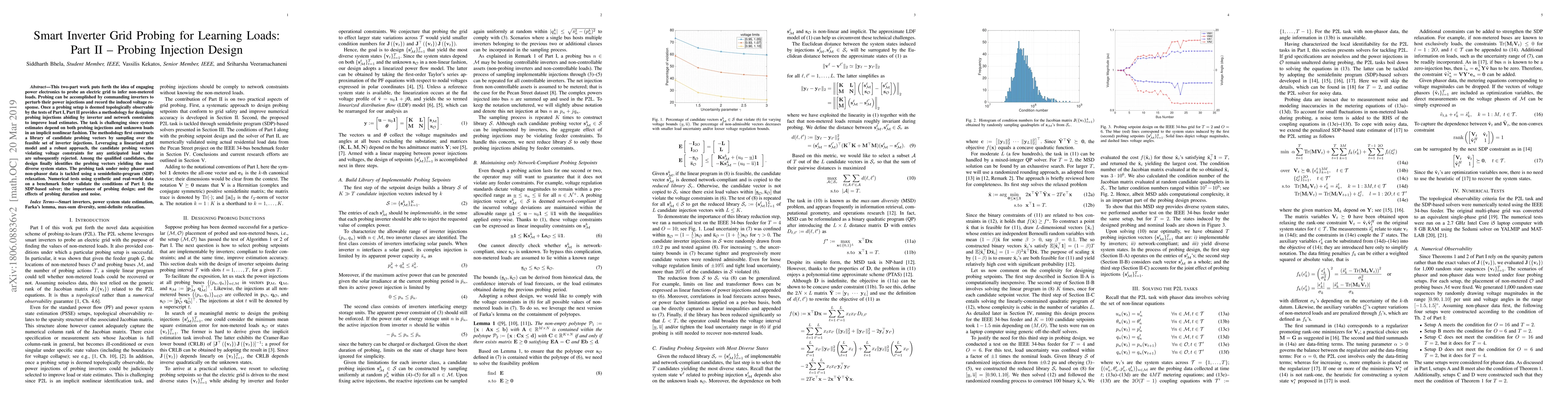 This two-part work puts forth the idea of engaging power electronics to probe an electric grid to infer non-metered loads. Probing can be accomplished by commanding inverters to perturb their power injections and record the induced voltage response. Once a probing setup is deemed topologically observable by the tests of Part I, Part II provides a methodology for designing probing injections abiding by inverter and network constraints to improve load estimates. The task is challenging since system estimates depend on both probing injections and unknown loads in an implicit nonlinear fashion. The methodology first constructs a library of candidate probing vectors by sampling over the feasible set of inverter injections. Leveraging a linearized grid model and a robust approach, the candidate probing vectors violating voltage constraints for any anticipated load value are subsequently rejected. Among the qualified candidates, the design finally identifies the probing vectors yielding the most diverse system states. The probing task under noisy phasor and non-phasor data is tackled using a semidefinite-program (SDP) relaxation. Numerical tests using synthetic and real-world data on a benchmark feeder validate the conditions of Part I; the SDP-based solver; the importance of probing design; and the effects of probing duration and noise.