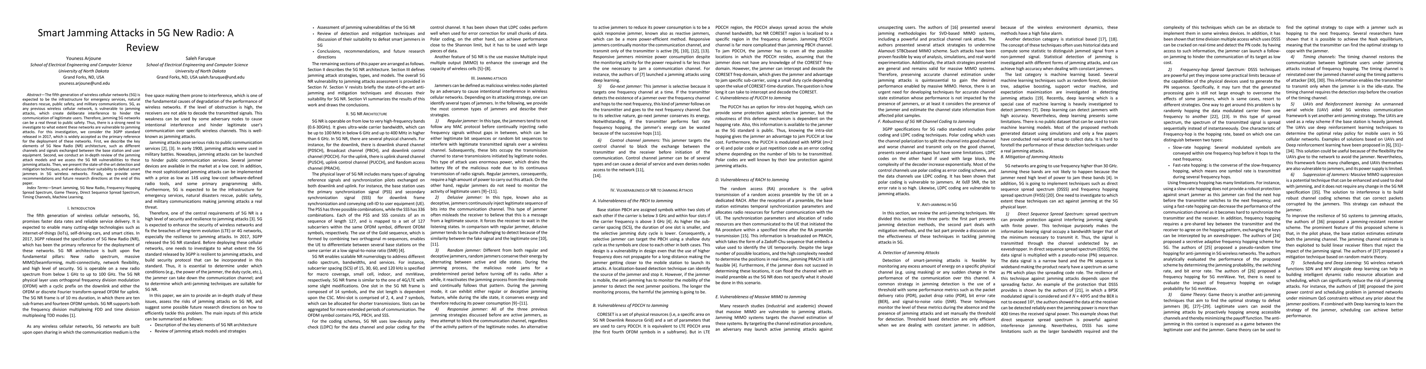 This research is novel because it highlights the importance of security in 5G networks and provides new insights into the types of jamming attacks that can be used against them