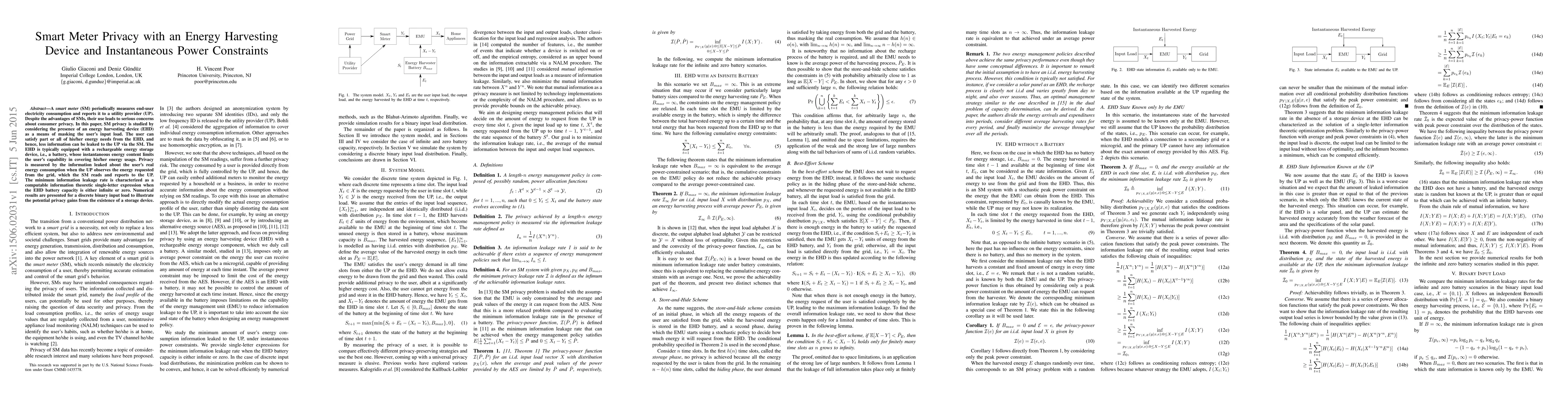 This paper investigates smart meter privacy by introducing an energy harvesting device to mask user consumption. It analyzes how the device's battery capacity affects the information leakage rate about real energy usage, providing a computable expression for minimum leakage under different battery conditions. Numerical results demonstrate potential privacy improvements.