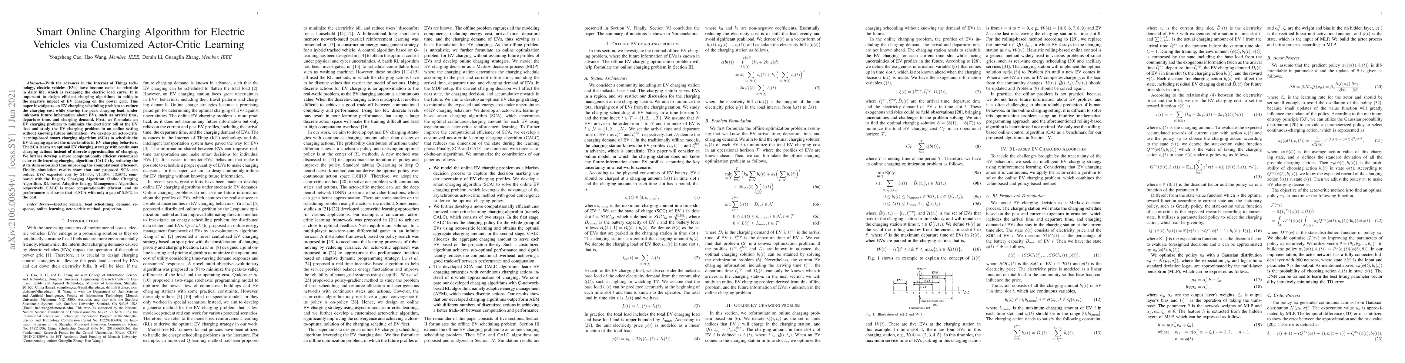 This paper proposes an actor-critic learning-based smart charging algorithm (SCA) to optimize electric vehicle (EV) charging schedules, minimizing costs and peak load while handling uncertainties. A customized actor-critic learning charging algorithm (CALC) is developed for improved efficiency, showing comparable performance with a 5.56% cost gap to SCA.