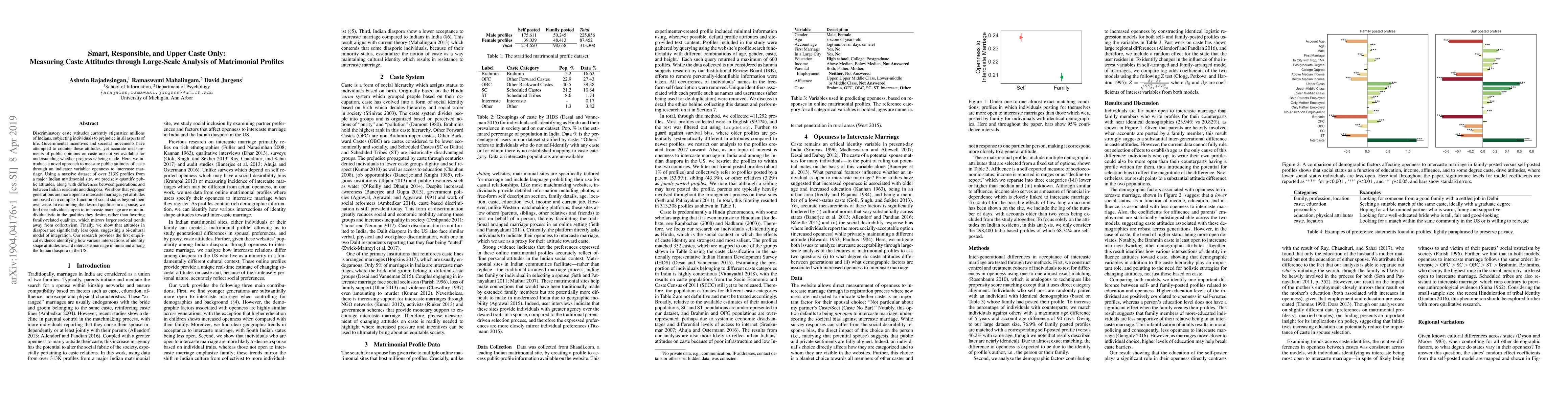 This study measures caste attitudes in India through analysis of matrimonial profiles, finding younger generations show more openness to intercaste marriage. It reveals complex social status influences and a shift towards individualistic preferences, while noting diaspora attitudes are less open, indicating a bi-cultural integration model.