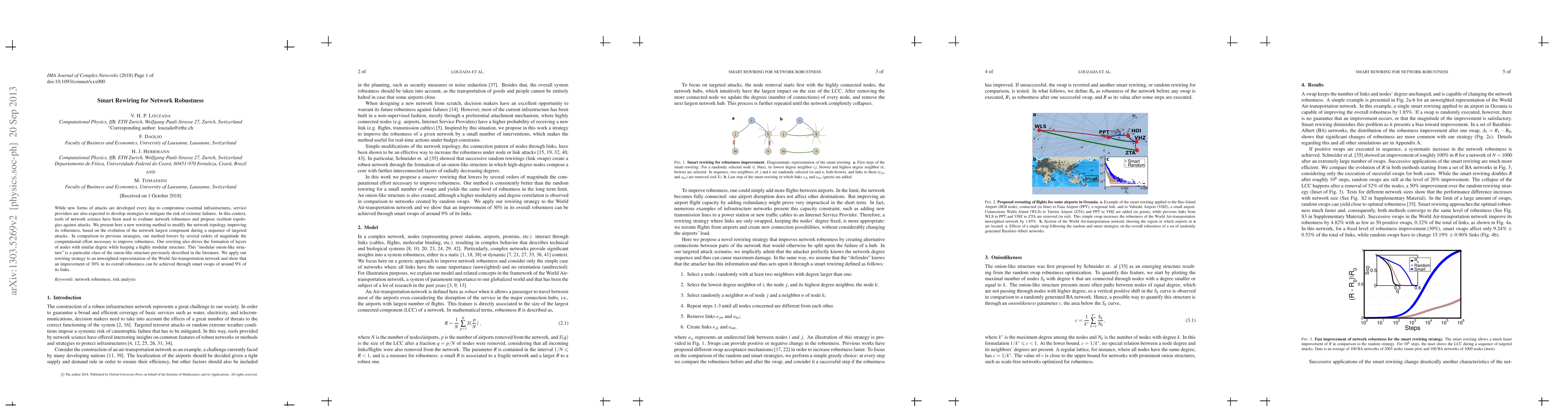 This paper proposes a novel rewiring method to enhance network robustness against targeted attacks, significantly reducing computational effort compared to previous strategies. The method induces a "modular onion-like structure" in the network, improving its robustness by 30% through only 9% link swaps in the World Air Transportation network.