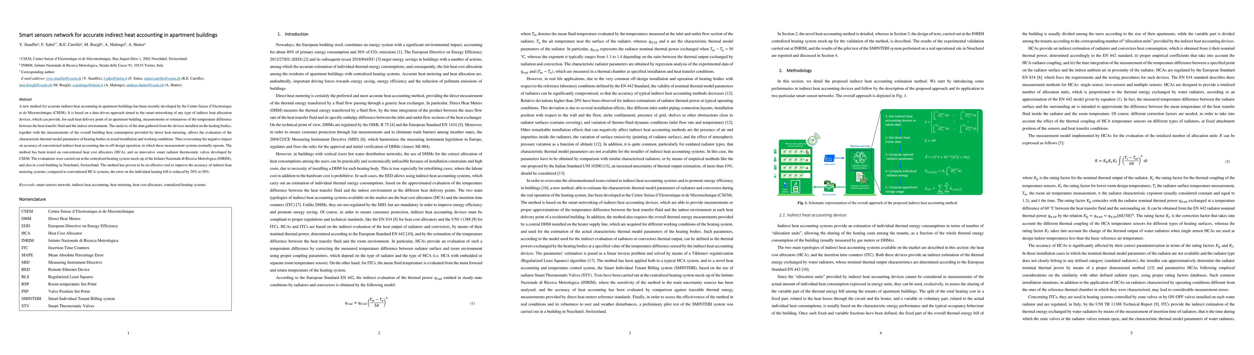 This paper presents a novel smart sensor network method for accurate indirect heat accounting in apartment buildings, developed by CSEM. It leverages data from networked devices to improve the precision of heat allocation, reducing individual heating bill errors by 20% to 50% compared to conventional systems.