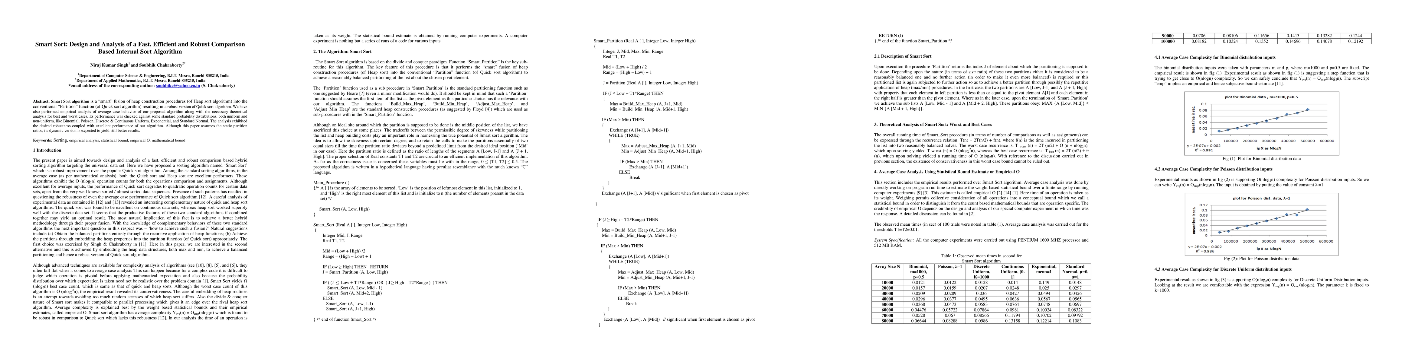 Smart Sort is a hybrid algorithm combining heap construction with Quick sort's partitioning, offering robustness and excellent performance in various probability distributions.