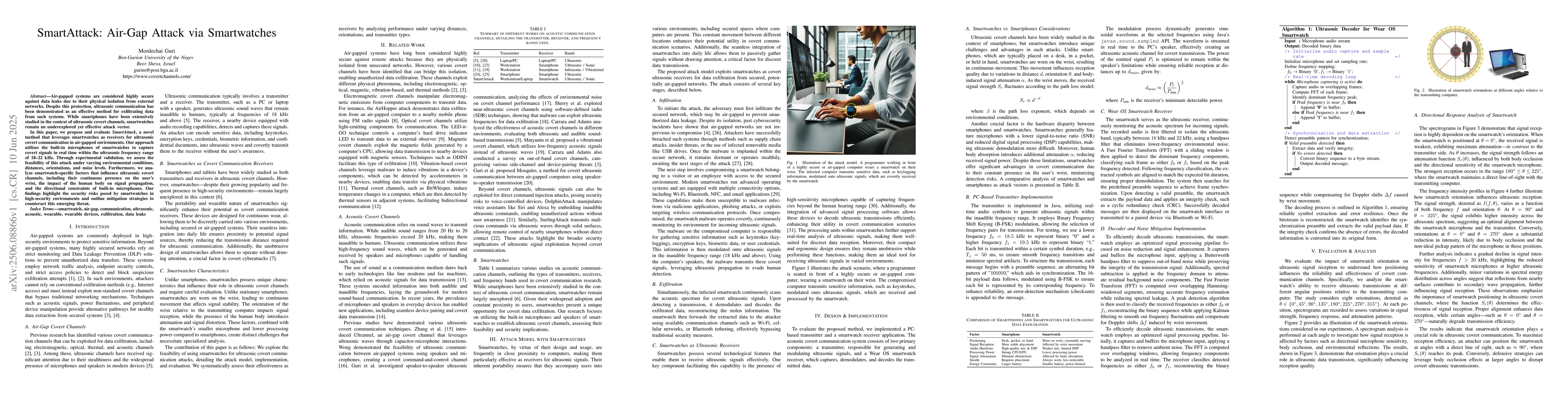 Air-gapped systems are considered highly secure against data leaks due to their physical isolation from external networks. Despite this protection, ultrasonic communication has been demonstrated as an effective method for exfiltrating data from such systems. While smartphones have been extensively studied in the context of ultrasonic covert channels, smartwatches remain an underexplored yet effective attack vector. In this paper, we propose and evaluate SmartAttack, a novel method that leverages smartwatches as receivers for ultrasonic covert communication in air-gapped environments. Our approach utilizes the built-in microphones of smartwatches to capture covert signals in real time within the ultrasonic frequency range of 18-22 kHz. Through experimental validation, we assess the feasibility of this attack under varying environmental conditions, distances, orientations, and noise levels. Furthermore, we analyze smartwatch-specific factors that influence ultrasonic covert channels, including their continuous presence on the user's wrist, the impact of the human body on signal propagation, and the directional constraints of built-in microphones. Our findings highlight the security risks posed by smartwatches in high-security environments and outline mitigation strategies to counteract this emerging threat.