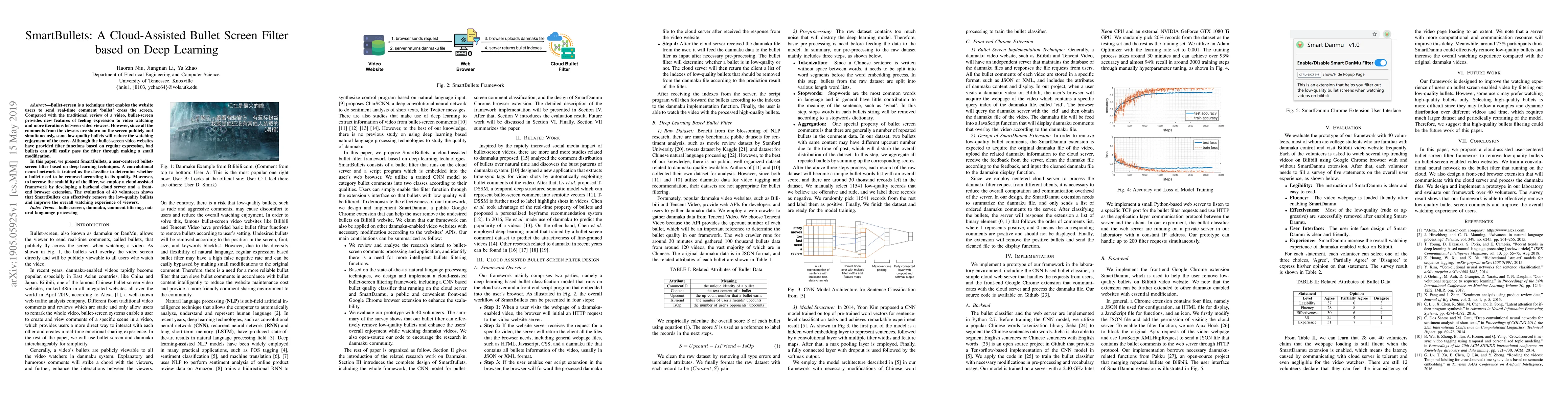 SmartBullets uses deep learning to filter out low-quality comments in video bullet screens, improving viewer experience. A cloud-assisted framework enhances scalability and effectiveness of the filter.