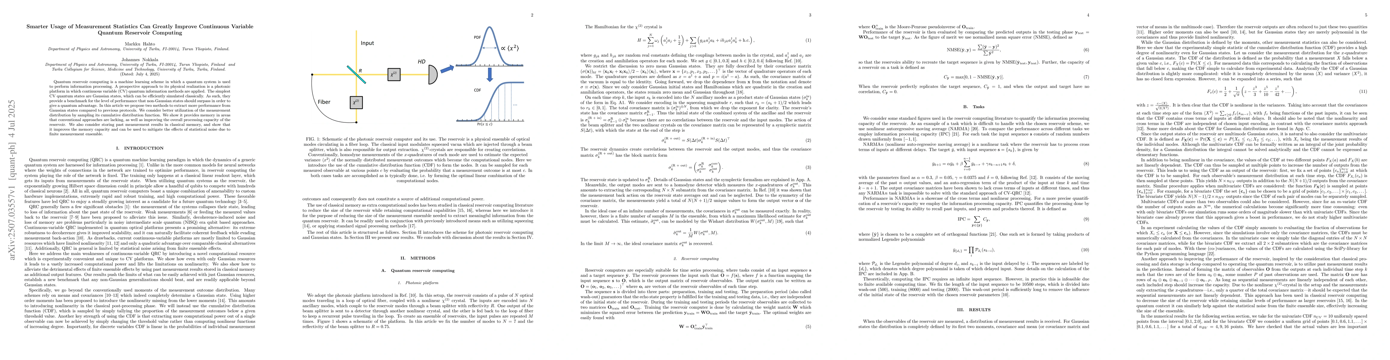 Quantum reservoir computing is a machine learning scheme in which a quantum system is used to perform information processing. A prospective approach to its physical realization is a photonic platform in which continuous variable (CV) quantum information methods are applied. The simplest CV quantum states are Gaussian states, which can be efficiently simulated classically. As such, they provide a benchmark for the level of performance that non-Gaussian states should surpass in order to give a quantum advantage. In this article we propose two methods to extract more performance from Gaussian states compared to previous protocols. We consider better utilization of the measurement distribution by sampling its cumulative distribution function. We show it provides memory in areas that conventional approaches are lacking, as well as improving the overall processing capacity of the reservoir. We also consider storing past measurement results in classical memory, and show that it improves the memory capacity and can be used to mitigate the effects of statistical noise due to finite measurement ensemble.