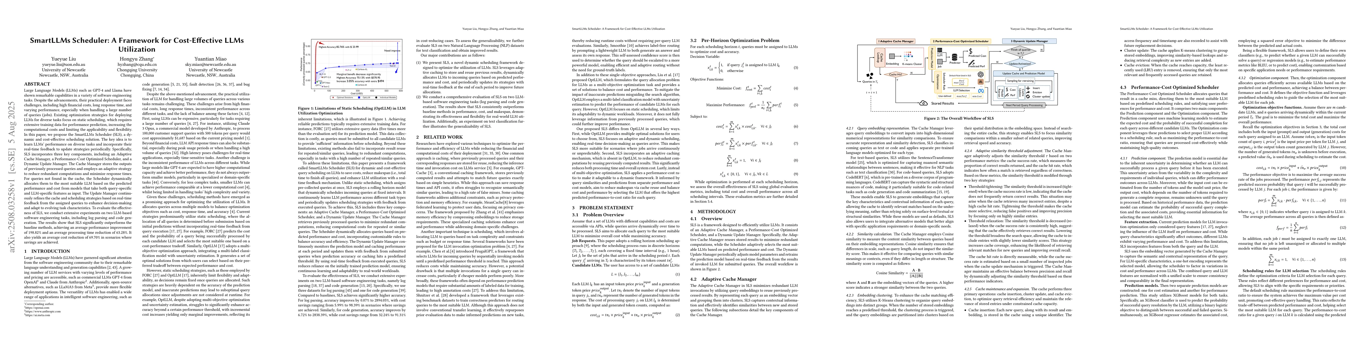 Large Language Models (LLMs) such as GPT-4 and Llama have shown remarkable capabilities in a variety of software engineering tasks. Despite the advancements, their practical deployment faces challenges, including high financial costs, long response time, and varying performance, especially when handling a large number of queries (jobs). Existing optimization strategies for deploying LLMs for diverse tasks focus on static scheduling, which requires extensive training data for performance prediction, increasing the computational costs and limiting the applicability and flexibility. In this paper, we propose the SmartLLMs Scheduler (SLS), a dynamic and cost-effective scheduling solution. The key idea is to learn LLMs' performance on diverse tasks and incorporate their real-time feedback to update strategies periodically. Specifically, SLS incorporates three key components, including an Adaptive Cache Manager, a Performance-Cost Optimized Scheduler, and a Dynamic Update Manager. The Cache Manager stores the outputs of previously processed queries and employs an adaptive strategy to reduce redundant computations and minimize response times. For queries not found in the cache, the Scheduler dynamically allocates them to the most suitable LLM based on the predicted performance and cost from models that take both query-specific and LLM-specific features as input. The Update Manager continuously refines the cache and scheduling strategies based on real-time feedback from the assigned queries to enhance decision-making and adapt to evolving task characteristics. To evaluate the effectiveness of SLS, we conduct extensive experiments on two LLM-based software engineering tasks, including log parsing and code generation. The results show that SLS significantly outperforms the baseline methods, achieving an average performance improvement of 198.82% and an average processing time reduction of 63.28%.