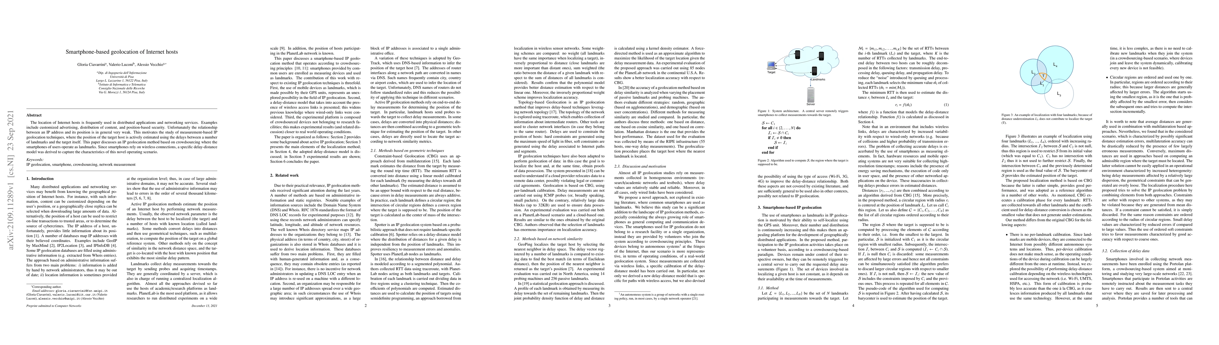 The location of Internet hosts is frequently used in distributed applications and networking services. Examples include customized advertising, distribution of content, and position-based security. Unfortunately the relationship between an IP address and its position is in general very weak. This motivates the study of measurement-based IP geolocation techniques, where the position of the target host is actively estimated using the delays between a number of landmarks and the target itself. This paper discusses an IP geolocation method based on crowdsourcing where the smartphones of users operate as landmarks. Since smartphones rely on wireless connections, a specific delay-distance model was derived to capture the characteristics of this novel operating scenario.