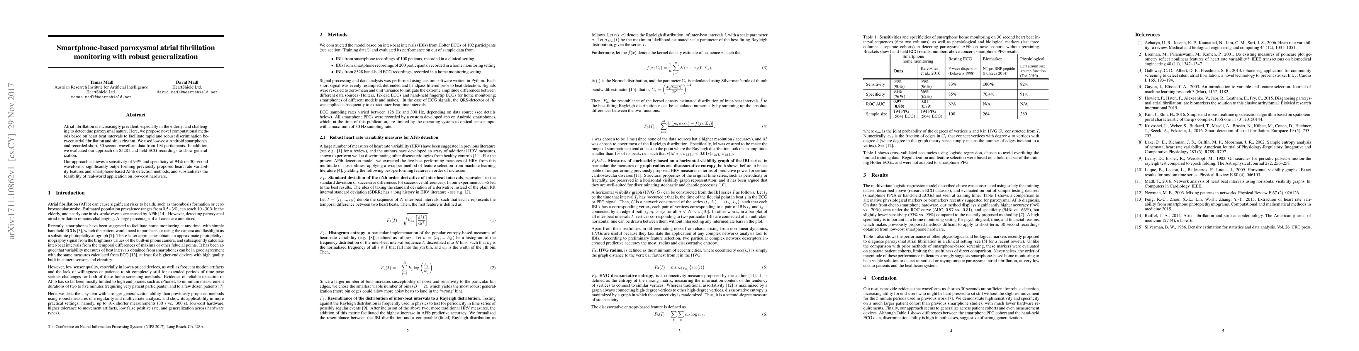 This paper proposes a novel computational method using smartphone-based heart beat interval analysis to detect paroxysmal atrial fibrillation with high accuracy, achieving 93% sensitivity and 94% specificity. The method demonstrates robust generalization across diverse ECG recordings, outperforming existing methods.