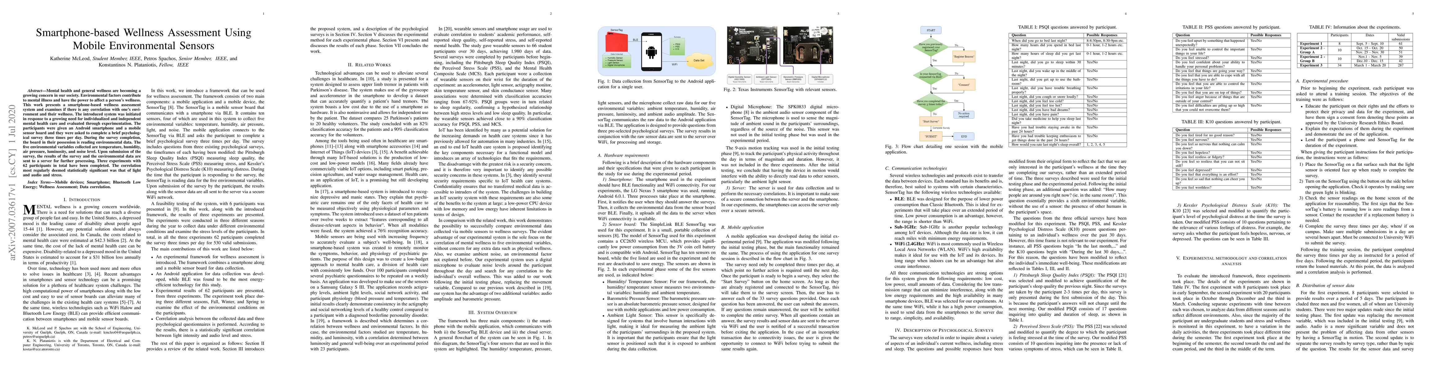 Mental health and general wellness are becoming a growing concern in our society. Environmental factors contribute to mental illness and have the power to affect a person's wellness. This work presents a smartphone-based wellness assessment system and examines if there is any correlation with one's environment and their wellness. The introduced system was initiated in response to a growing need for individualized and independent mental health care and evaluated through experimentation. The participants were given an Android smartphone and a mobile sensor board and they were asked to complete a brief psychological survey three times per day. During the survey completion, the board in their possession is reading environmental data. The five environmental variables collected are temperature, humidity, air pressure, luminosity, and noise level. Upon submission of the survey, the results of the survey and the environmental data are sent to a server for further processing. Three experiments with 62 participants in total have been completed. The correlation most regularly deemed statistically significant was that of light and audio and stress.