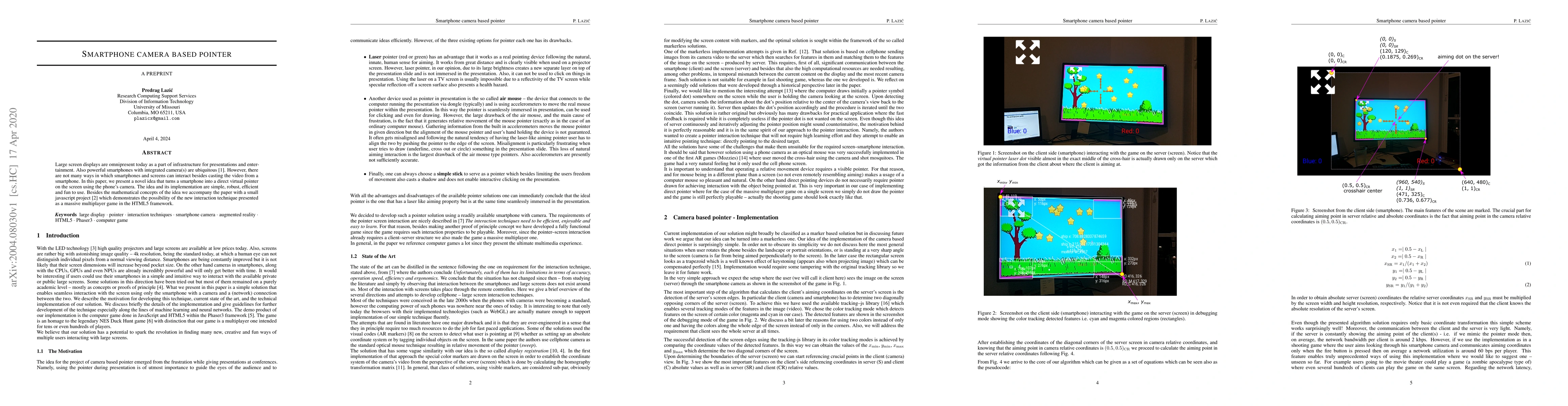 This paper introduces a method to use a smartphone's camera as a virtual pointer on large screen displays, enhancing interaction between smartphones and screens. The proposed technique is simple, robust, and demonstrated through a JavaScript project showcasing a multiplayer game in the HTML5 framework.