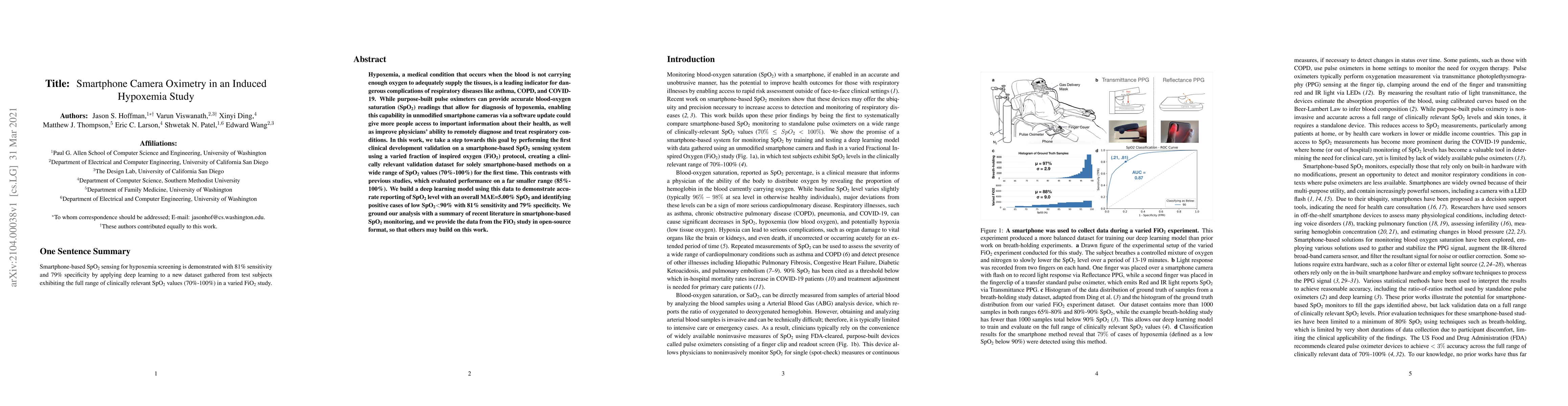 Hypoxemia, a medical condition that occurs when the blood is not carrying enough oxygen to adequately supply the tissues, is a leading indicator for dangerous complications of respiratory diseases like asthma, COPD, and COVID-19. While purpose-built pulse oximeters can provide accurate blood-oxygen saturation (SpO$_2$) readings that allow for diagnosis of hypoxemia, enabling this capability in unmodified smartphone cameras via a software update could give more people access to important information about their health, as well as improve physicians' ability to remotely diagnose and treat respiratory conditions. In this work, we take a step towards this goal by performing the first clinical development validation on a smartphone-based SpO$_2$ sensing system using a varied fraction of inspired oxygen (FiO$_2$) protocol, creating a clinically relevant validation dataset for solely smartphone-based methods on a wide range of SpO$_2$ values (70%-100%) for the first time. This contrasts with previous studies, which evaluated performance on a far smaller range (85%-100%). We build a deep learning model using this data to demonstrate accurate reporting of SpO$_2$ level with an overall MAE=5.00% SpO$_2$ and identifying positive cases of low SpO$_2$<90% with 81% sensitivity and 79% specificity. We ground our analysis with a summary of recent literature in smartphone-based SpO2 monitoring, and we provide the data from the FiO$_2$ study in open-source format, so that others may build on this work.