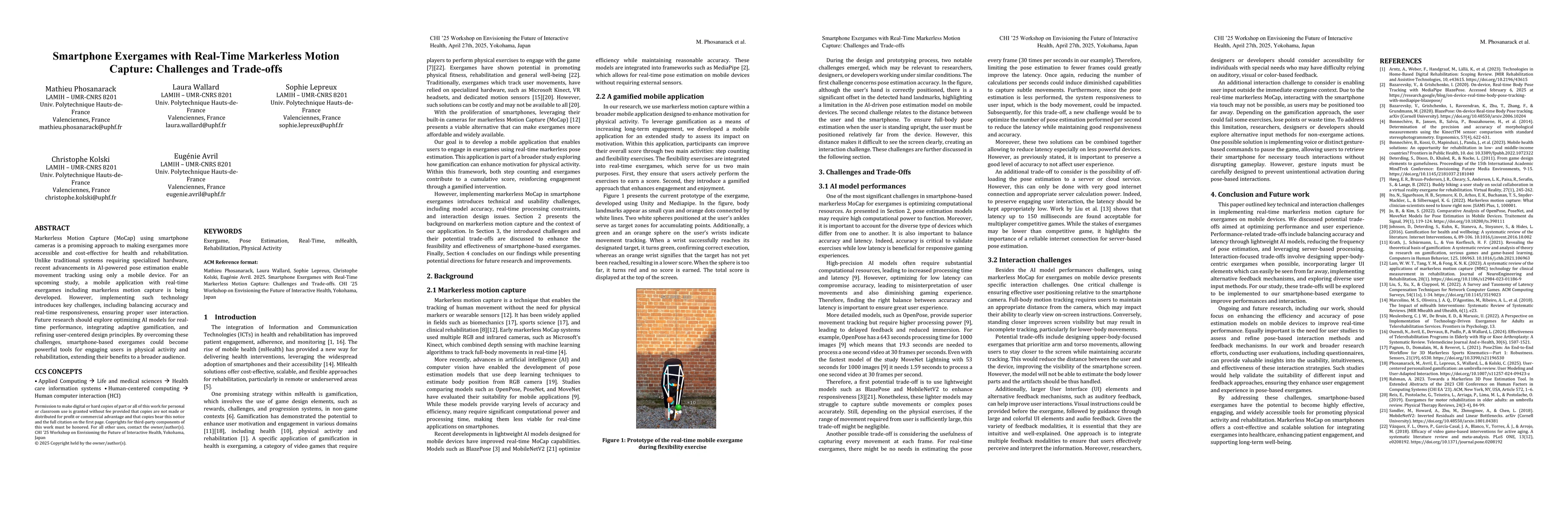 Markerless Motion Capture (MoCap) using smartphone cameras is a promising approach to making exergames more accessible and cost-effective for health and rehabilitation. Unlike traditional systems requiring specialized hardware, recent advancements in AI-powered pose estimation enable movement tracking using only a mobile device. For an upcoming study, a mobile application with real-time exergames including markerless motion capture is being developed. However, implementing such technology introduces key challenges, including balancing accuracy and real-time responsiveness, ensuring proper user interaction. Future research should explore optimizing AI models for realtime performance, integrating adaptive gamification, and refining user-centered design principles. By overcoming these challenges, smartphone-based exergames could become powerful tools for engaging users in physical activity and rehabilitation, extending their benefits to a broader audience.