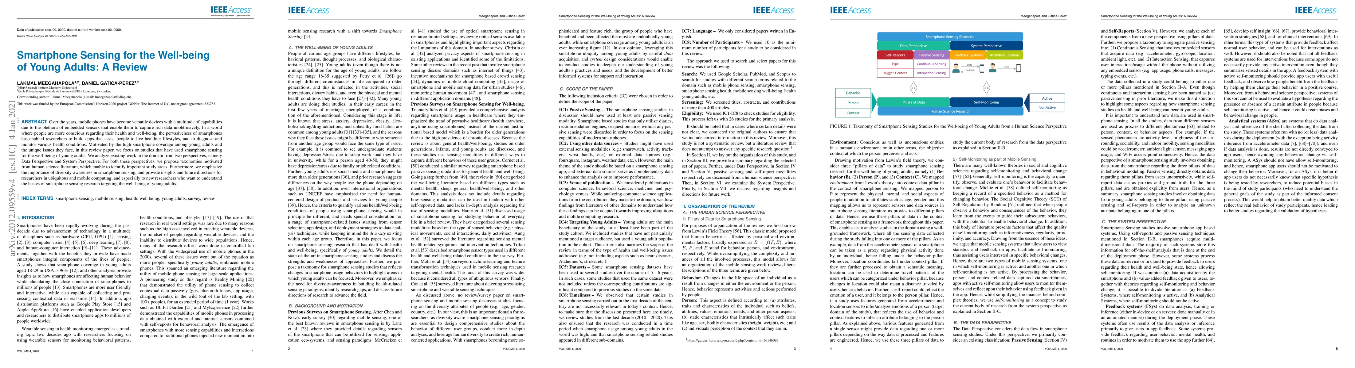 Over the years, mobile phones have become versatile devices with a multitude of capabilities due to the plethora of embedded sensors that enable them to capture rich data unobtrusively. In a world where people are more conscious regarding their health and well-being, the pervasiveness of smartphones has enabled researchers to build apps that assist people to live healthier lifestyles, and to diagnose and monitor various health conditions. Motivated by the high smartphone coverage among young adults and the unique issues they face, in this review paper, we focus on studies that have used smartphone sensing for the well-being of young adults. We analyze existing work in the domain from two perspectives, namely Data Perspective and System Perspective. For both these perspectives, we propose taxonomies motivated from human science literature, which enable to identify important study areas. Furthermore, we emphasize the importance of diversity-awareness in smartphone sensing, and provide insights and future directions for researchers in ubiquitous and mobile computing, and especially to new researchers who want to understand the basics of smartphone sensing research targeting the well-being of young adults.