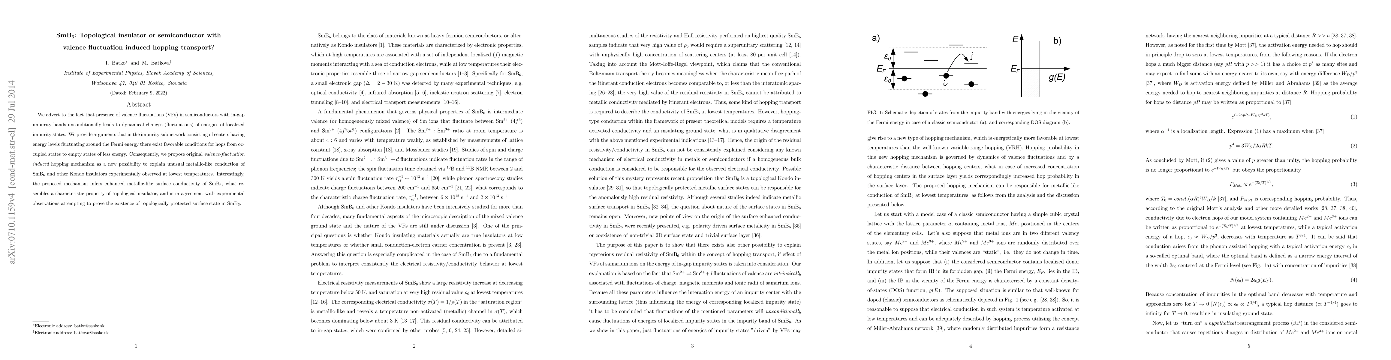 We advert to the fact that presence of valence fluctuations (VFs) in semiconductors with in-gap impurity bands unconditionally leads to dynamical changes (fluctuations) of energies of localized impurity states. We provide arguments that in the impurity subnetwork consisting of centers having energy levels fluctuating around the Fermi energy there exist favorable conditions for hops from occupied states to empty states of less energy. Consequently, we propose original valence-fluctuation induced hopping mechanism as a new possibility to explain unusual metallic-like conduction of SmB$_6$ and other Kondo insulators experimentally observed at lowest temperatures. Interestingly, the proposed mechanism infers enhanced metallic-like surface conductivity of SmB$_6$, what resembles a characteristic property of topological insulator, and is in agreement with experimental observations attempting to prove the existence of topologically protected surface state in SmB$_6$.