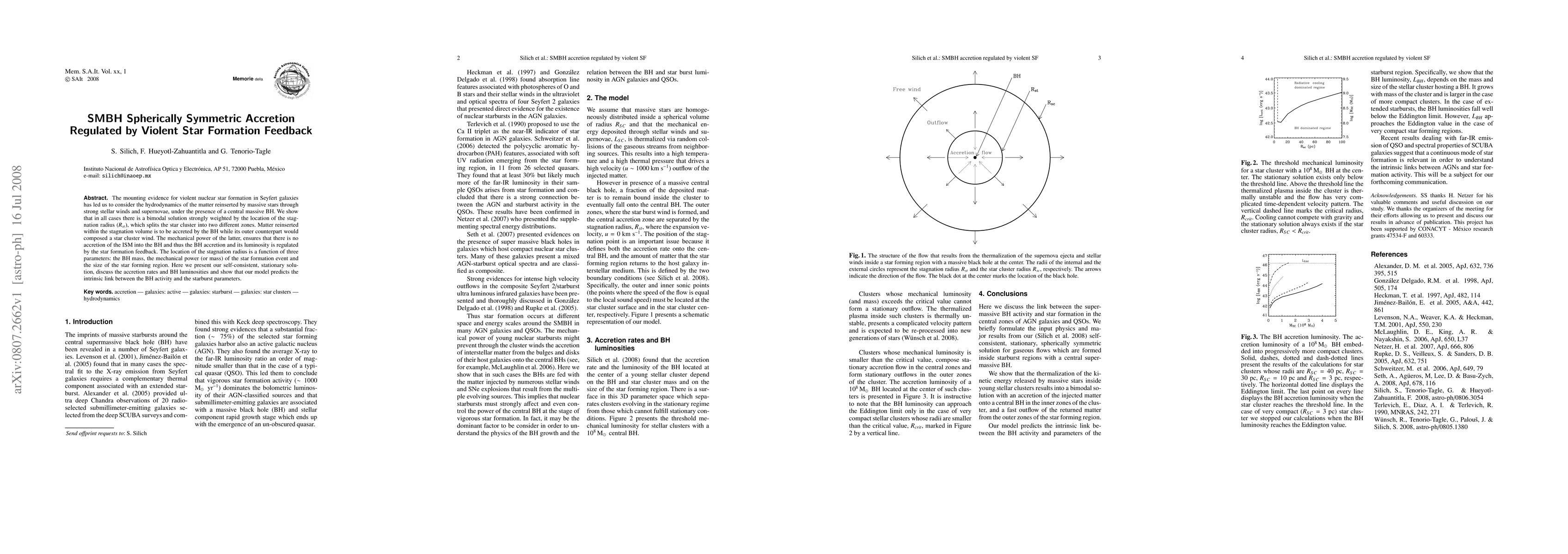 The mounting evidence for violent nuclear star formation in Seyfert galaxies has led us to consider the hydrodynamics of the matter reinserted by massive stars through strong stellar winds and supernovae, under the presence of a central massive BH. We show that in all cases there is a bimodal solution strongly weighted by the location of the stagnation radius (Rst), which splits the star cluster into two different zones. Matter reinserted within the stagnation volume is to be accreted by the BH while its outer counterpart would composed a star cluster wind. The mechanical power of the latter, ensures that there is no accretion of the ISM into the BH and thus the BH accretion and its luminosity is regulated by the star formation feedback. The location of the stagnation radius is a function of three parameters: the BH mass, the mechanical power (or mass) of the star formation event and the size of the star forming region. Here we present our self-consistent, stationary solution, discuss the accretion rates and BH luminosities and show that our model predicts the intrinsic link between the BH activity and the starburst parameters.
