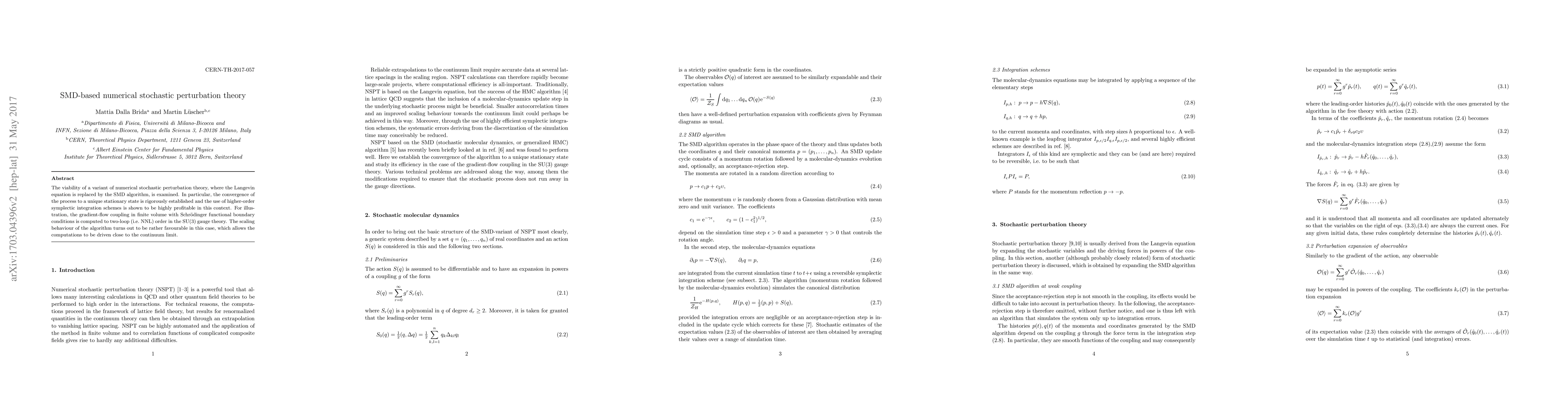 This paper explores a numerical stochastic perturbation theory variant using the SMD algorithm, demonstrating its convergence to a unique stationary state. It highlights the benefits of higher-order symplectic integration schemes and applies the method to compute the gradient-flow coupling in SU(3) gauge theory, showing favorable scaling behavior.
