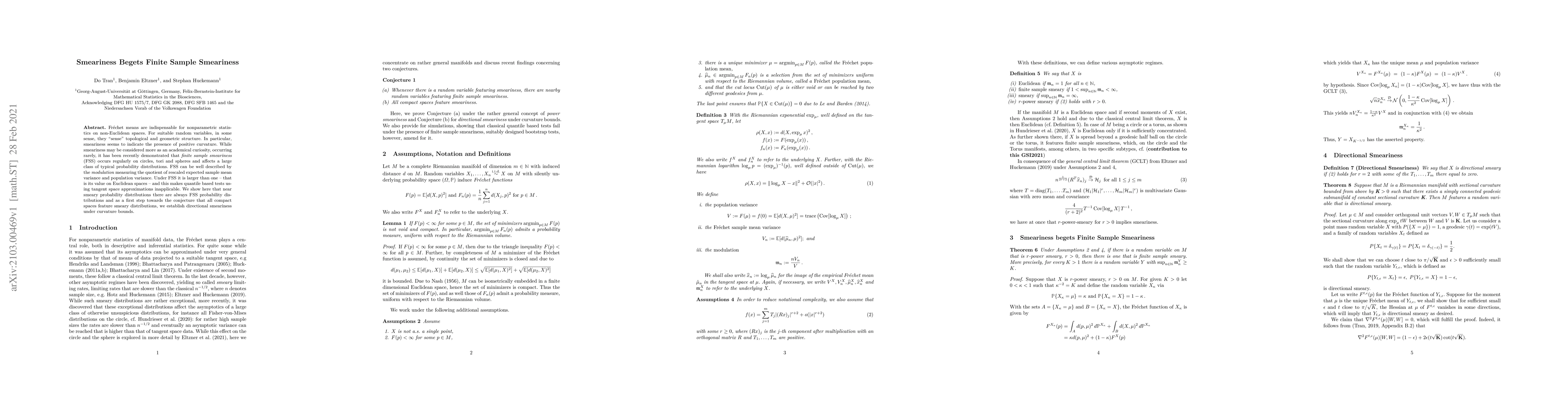 Fr\'echet means are indispensable for nonparametric statistics on non-Euclidean spaces. For suitable random variables, in some sense, they "sense" topological and geometric structure. In particular, smeariness seems to indicate the presence of positive curvature. While smeariness may be considered more as an academical curiosity, occurring rarely, it has been recently demonstrated that finite sample smeariness (FSS) occurs regularly on circles, tori and spheres and affects a large class of typical probability distributions. FSS can be well described by the modulation measuring the quotient of rescaled expected sample mean variance and population variance. Under FSS it is larger than one - that is its value on Euclidean spaces - and this makes quantile based tests using tangent space approximations inapplicable. We show here that near smeary probability distributions there are always FSS probability distributions and as a first step towards the conjecture that all compact spaces feature smeary distributions, we establish directional smeariness under curvature bounds.