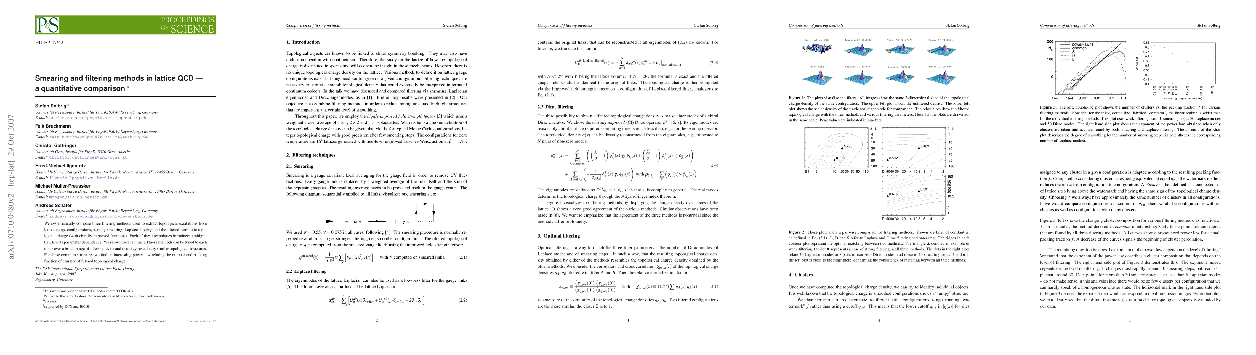 This paper quantitatively compares three filtering methods—smearing, Laplace filtering, and filtered fermionic topological charge—used in lattice QCD to extract topological excitations. Despite their parameter dependencies, the methods can be tuned to reveal similar topological structures, with a notable power-law relationship found for the number and packing fraction of clusters of filtered topological charge.