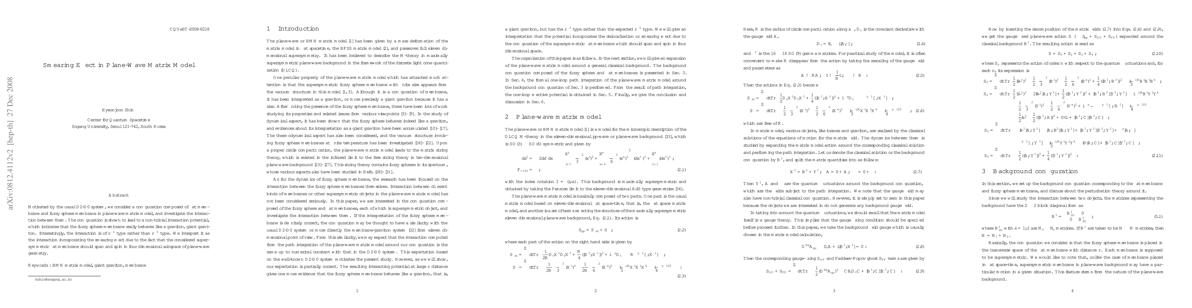 This paper explores the interaction between a flat membrane and a fuzzy sphere membrane in a plane-wave matrix model, revealing a non-trivial r^{-3} interaction potential indicative of a graviton-like behavior. The authors attribute the smearing effect to the four-dimensional span and spin of the flat membrane.