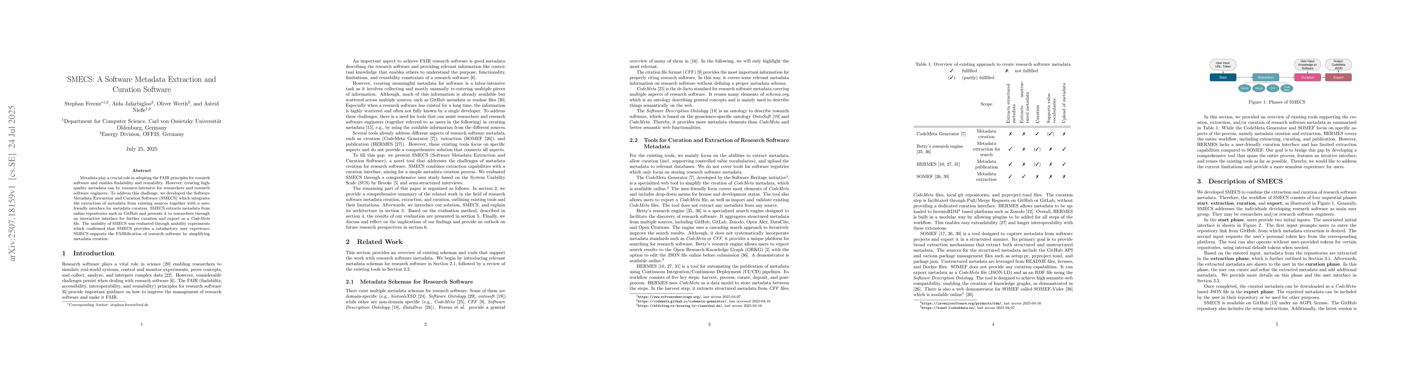 SMECS, built on HERMES, integrates metadata extraction from various sources and provides a user-friendly interface for curation, resulting in a CodeMeta file.