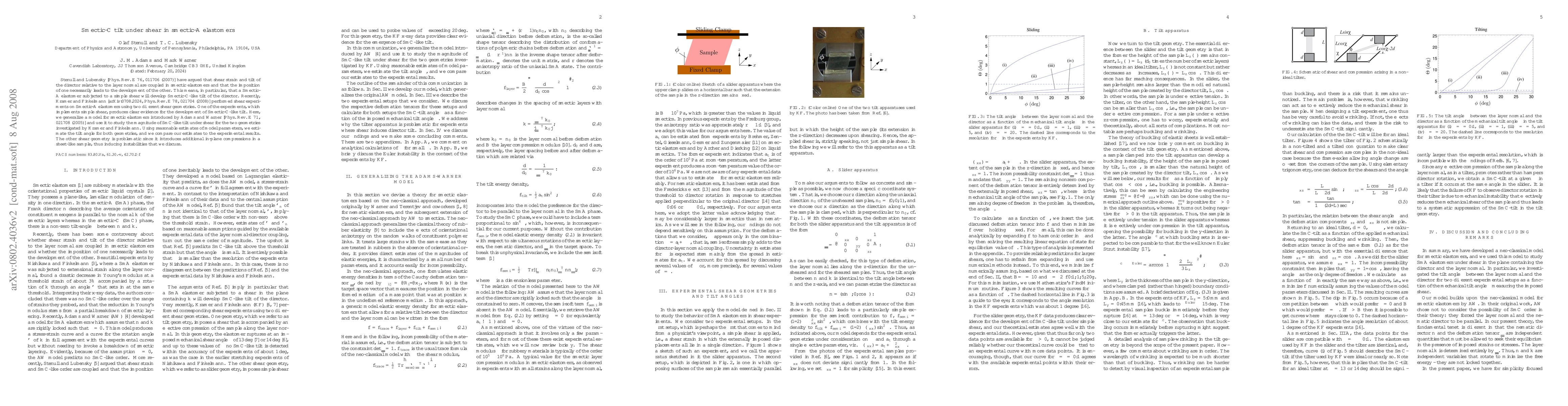 Stenull and Lubensky [Phys. Rev. E {\bf 76}, 011706 (2007)] have argued that shear strain and tilt of the director relative to the layer normal are coupled in smectic elastomers and that the imposition of one necessarily leads to the development of the other. This means, in particular, that a Smectic-A elastomer subjected to a simple shear will develop Smectic-C-like tilt of the director. Recently, Kramer and Finkelmann [arXiv:0708.2024, Phys. Rev. E {\bf 78}, 021704 (2008)] performed shear experiments on Smectic-A elastomers using two different shear geometries. One of the experiments, which implements simple shear, produces clear evidence for the development of Smectic-C-like tilt. Here, we generalize a model for smectic elastomers introduced by Adams and Warner [Phys. Rev. E {\bf 71}, 021708 (2005)] and use it to study the magnitude of Smectic-C-like tilt under shear for the two geometries investigated by Kramer and Finkelmann. Using reasonable estimates of model parameters, we estimate the tilt angle for both geometries, and we compare our estimates to the experimental results. The other shear geometry is problematic since it introduces additional in-plane compressions in a sheet-like sample, thus inducing instabilities that we discuss.