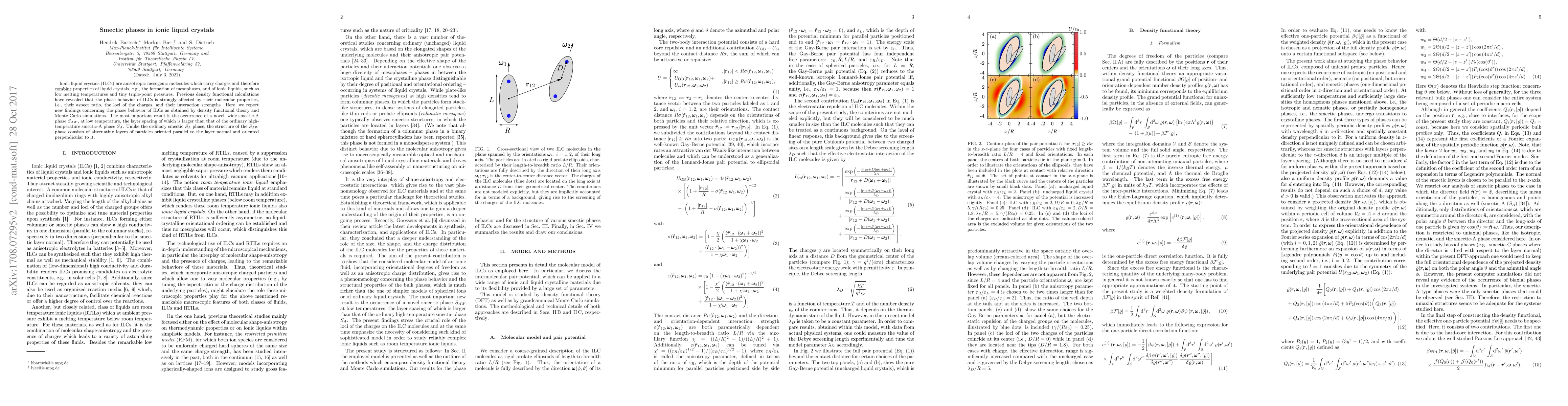 Ionic liquid crystals (ILCs) are anisotropic mesogenic molecules which carry charges and therefore combine properties of liquid crystals, e.g., the formation of mesophases, and of ionic liquids, such as low melting temperatures and tiny triple-point pressures. Previous density functional calculations have revealed that the phase behavior of ILCs is strongly affected by their molecular properties, i.e., their aspect ratio, the loci of the charges, and their interaction strengths. Here, we report new findings concerning the phase behavior of ILCs as obtained by density functional theory and Monte Carlo simulations. The most important result is the occurrence of a novel, wide smectic-A phase $S_{AW}$, at low temperature, the layer spacing of which is larger than that of the ordinary high-temperature smectic-A phase $S_{A}$. Unlike the ordinary smectic $S_A$ phase, the structure of the $S_{AW}$ phase consists of alternating layers of particles oriented parallel to the layer normal and oriented perpendicular to it.