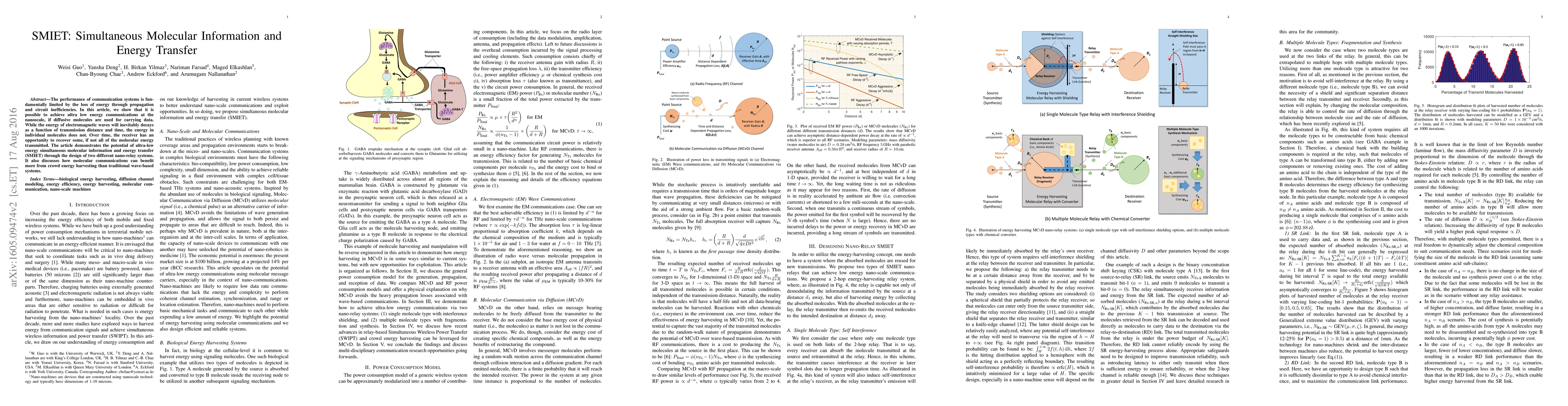 This paper proposes ultra-low energy nano-scale communication using diffusive molecules to carry data, overcoming the energy decay of electromagnetic waves. It demonstrates the potential of simultaneous molecular information and energy transfer (SMIET) through two nano-relay systems and highlights the benefits of crowd energy harvesting in molecular communications.