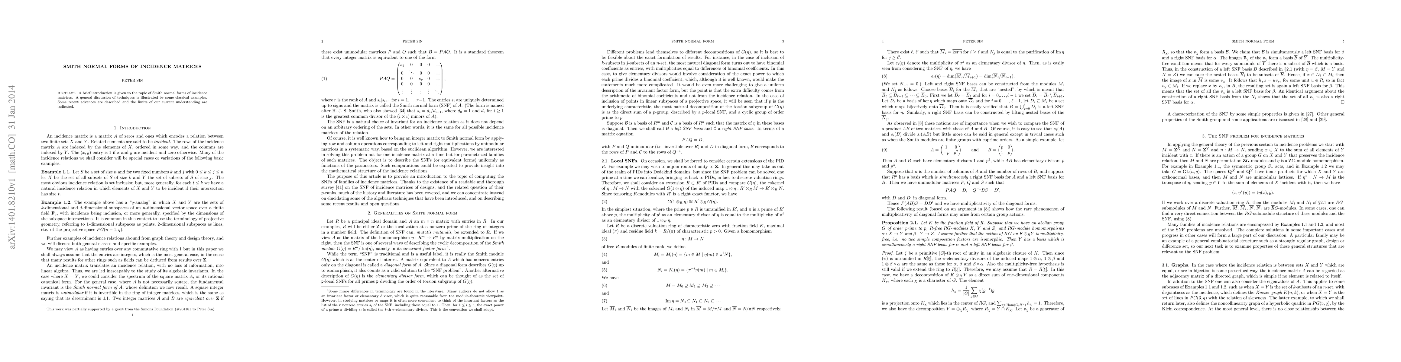 A brief introduction is given to the topic of Smith normal forms of incidence matrices. A general discussion of techniques is illustrated by some classical examples. Some recent advances are described and the limits of our current understanding are indicated.
