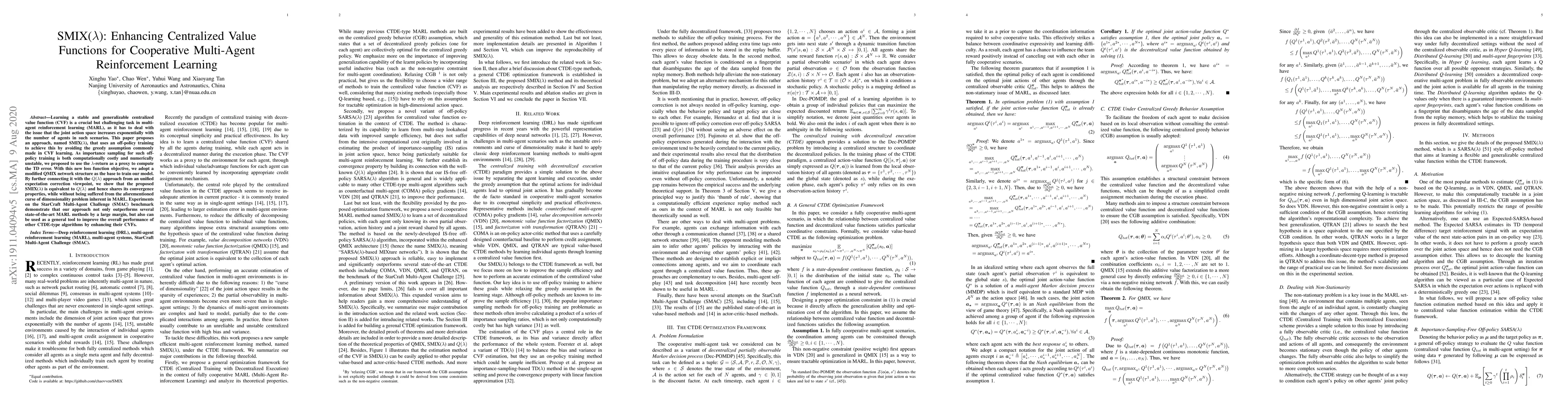 Learning a stable and generalizable centralized value function (CVF) is a crucial but challenging task in multi-agent reinforcement learning (MARL), as it has to deal with the issue that the joint action space increases exponentially with the number of agents in such scenarios. This paper proposes an approach, named SMIX(${\lambda}$), to address the issue using an efficient off-policy centralized training method within a flexible learner search space. As importance sampling for such off-policy training is both computationally costly and numerically unstable, we proposed to use the ${\lambda}$-return as a proxy to compute the TD error. With this new loss function objective, we adopt a modified QMIX network structure as the base to train our model. By further connecting it with the ${Q(\lambda)}$ approach from an unified expectation correction viewpoint, we show that the proposed SMIX(${\lambda}$) is equivalent to ${Q(\lambda)}$ and hence shares its convergence properties, while without being suffered from the aforementioned curse of dimensionality problem inherent in MARL. Experiments on the StarCraft Multi-Agent Challenge (SMAC) benchmark demonstrate that our approach not only outperforms several state-of-the-art MARL methods by a large margin, but also can be used as a general tool to improve the overall performance of other CTDE-type algorithms by enhancing their CVFs.