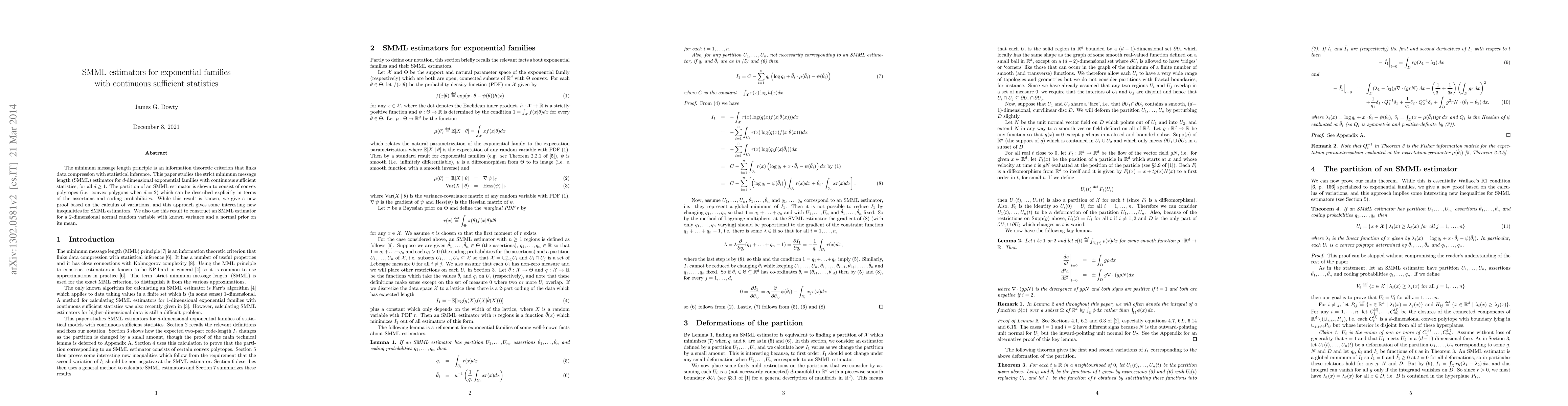 This paper explores the strict minimum message length (SMML) estimator for exponential families with continuous sufficient statistics, proving that its partition consists of convex polytopes using a calculus of variations approach. It also constructs an SMML estimator for a 2-dimensional normal random variable with known variance and a normal prior on its mean.