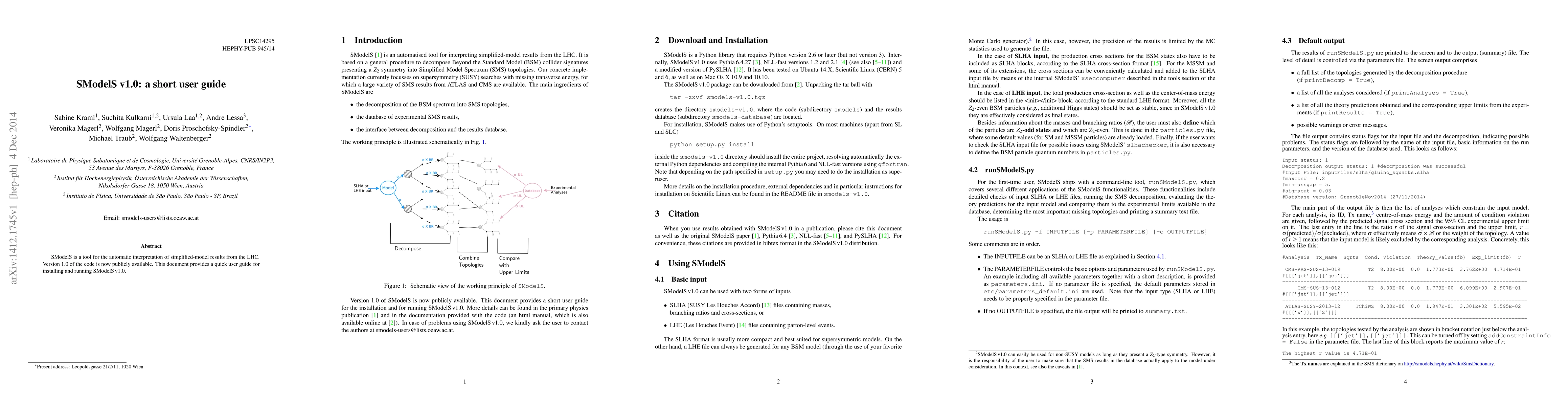 SModelS is a tool for the automatic interpretation of simplified-model results from the LHC. Version 1.0 of the code is now publicly available. This document provides a quick user guide for installing and running SModelS v1.0.