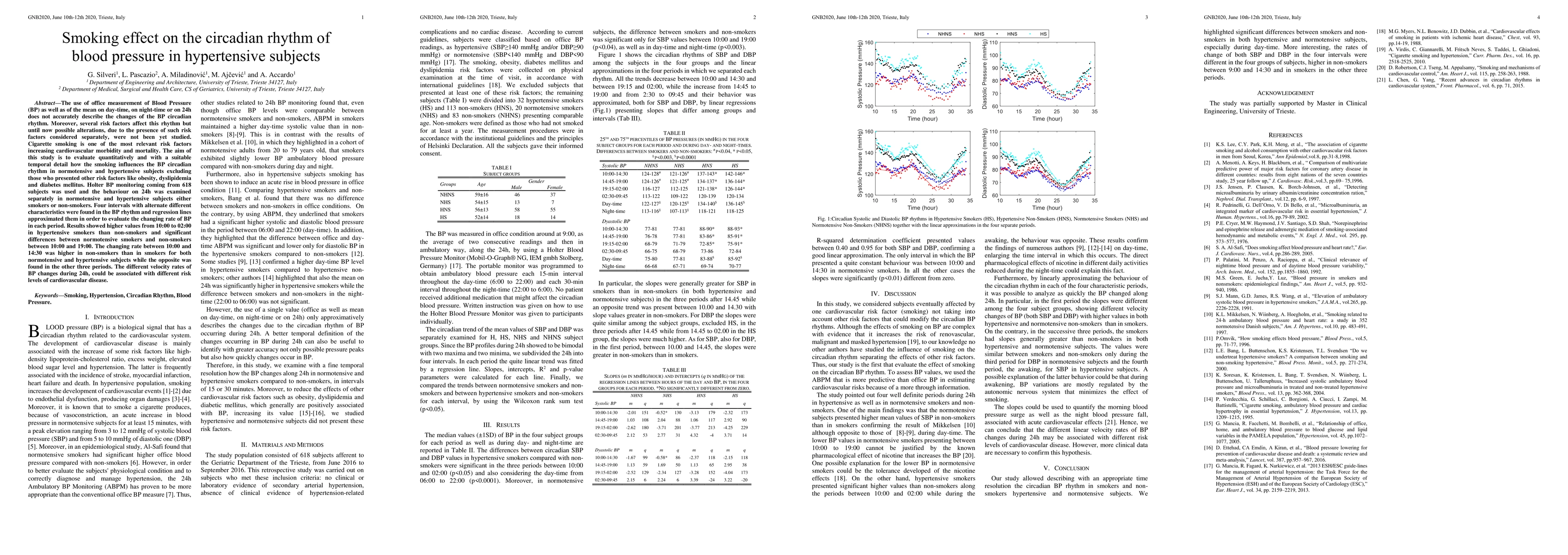 This study investigates the impact of smoking on the circadian rhythm of blood pressure in hypertensive subjects using Holter BP monitoring, finding that hypertensive smokers exhibit higher blood pressure values and different rates of blood pressure change compared to non-smokers, suggesting varied cardiovascular risk levels.