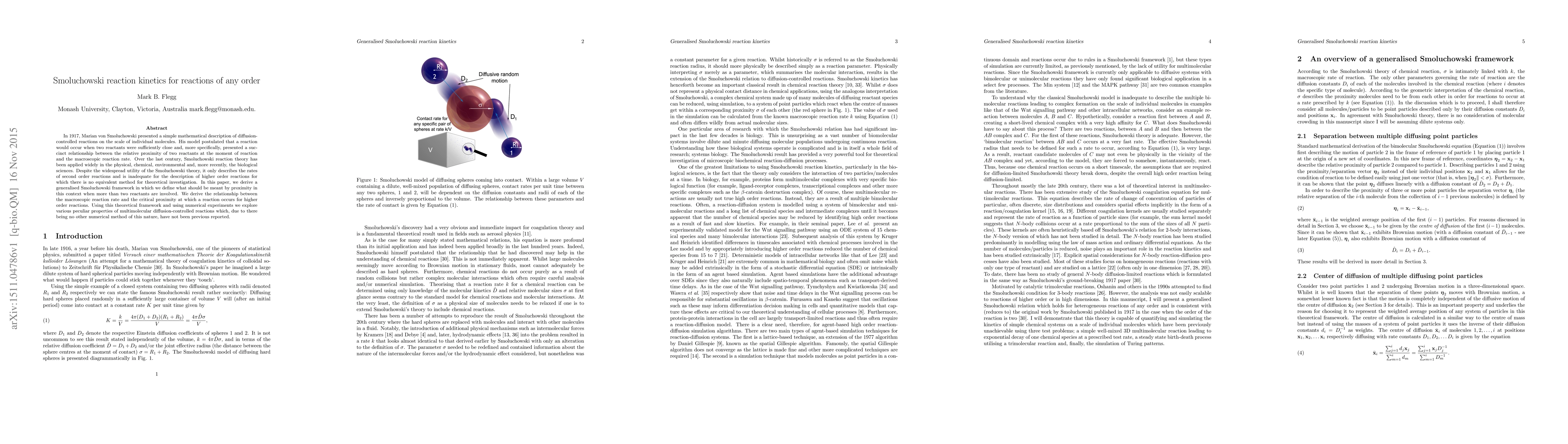 In 1917, Marian von Smoluchowski presented a simple mathematical description of diffusion-controlled reactions on the scale of individual molecules. His model postulated that a reaction would occur when two reactants were sufficiently close and, more specifically, presented a succinct relationship between the relative proximity of two reactants at the moment of reaction and the macroscopic reaction rate. Over the last century, Smoluchowski reaction theory has been applied widely in the physical, chemical, environmental and, more recently, the biological sciences. Despite the widespread utility of the Smoluchowski theory, it only describes the rates of second order reactions and is inadequate for the description of higher order reactions for which there is no equivalent method for theoretical investigation. In this paper, we derive a generalised Smoluchowski framework in which we define what should be meant by proximity in this context when more than two reactants are involved. We derive the relationship between the macroscopic reaction rate and the critical proximity at which a reaction occurs for higher order reactions. Using this theoretical framework and using numerical experiments we explore various peculiar properties of multimolecular diffusion-controlled reactions which, due to there being no other numerical method of this nature, have not been previous reported.