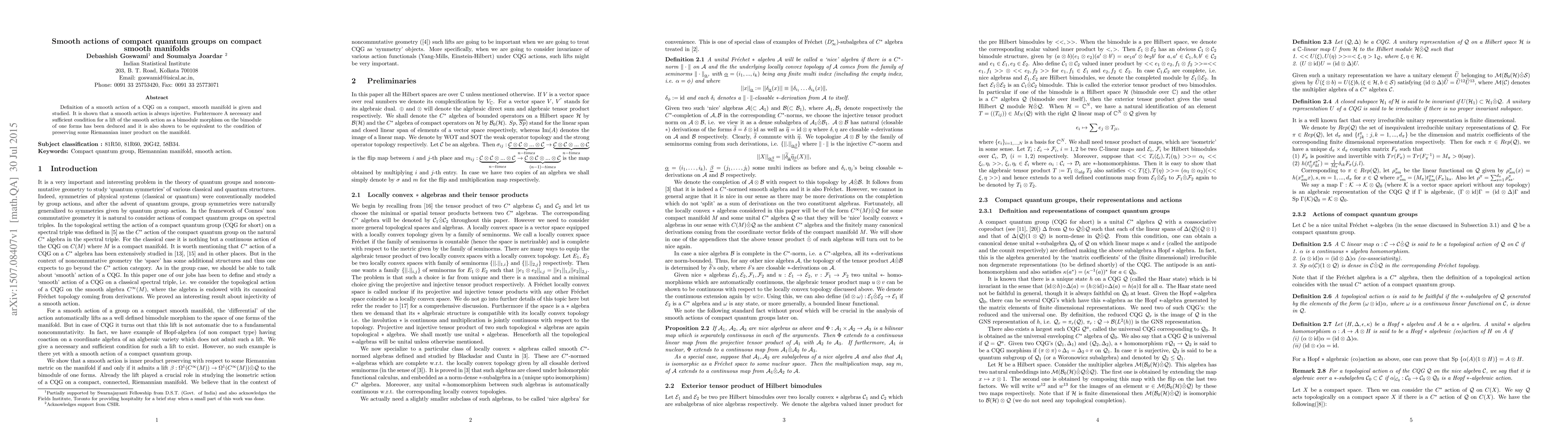 Definition of a smooth action of a CQG on a compact, smooth manifold is given and studied. It is shown that a smooth action is always injective. Furthermore A necessary and sufficient condition for a lift of the smooth action as a bimodule morphism on the bimodule of one forms has been deduced and it is also shown to be equivalent to the condition of preserving some Riemannian inner product on the manifold.