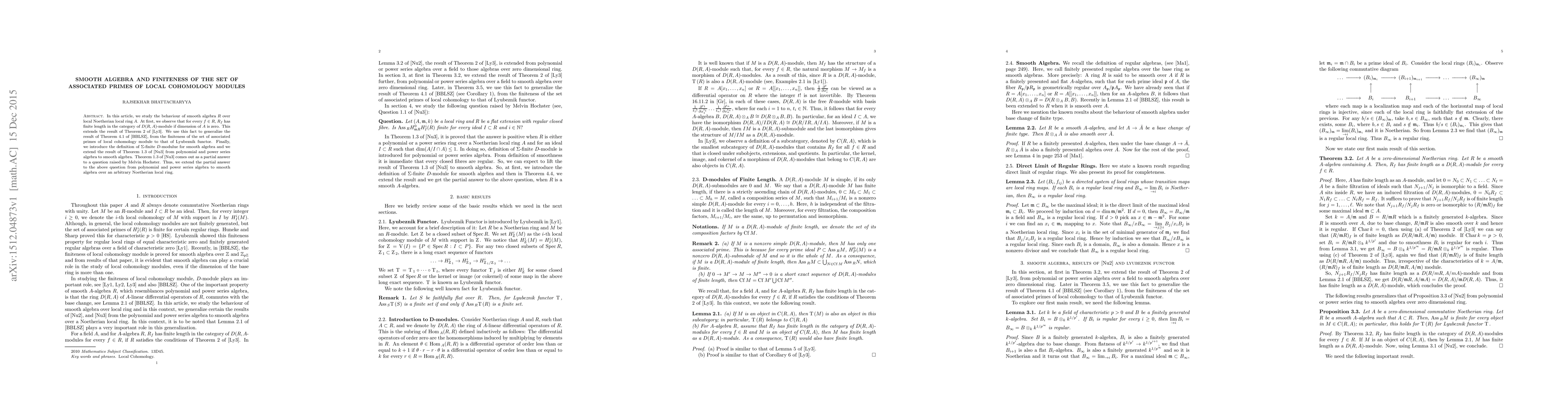 This paper examines the finiteness of associated primes of local cohomology modules for smooth algebras over local Noetherian rings, extending prior results from polynomial and power series algebras to smooth algebras. It demonstrates that certain $R_f$ modules have finite length and generalizes the finiteness of associated primes from specific functors to the Lyubeznik functor.