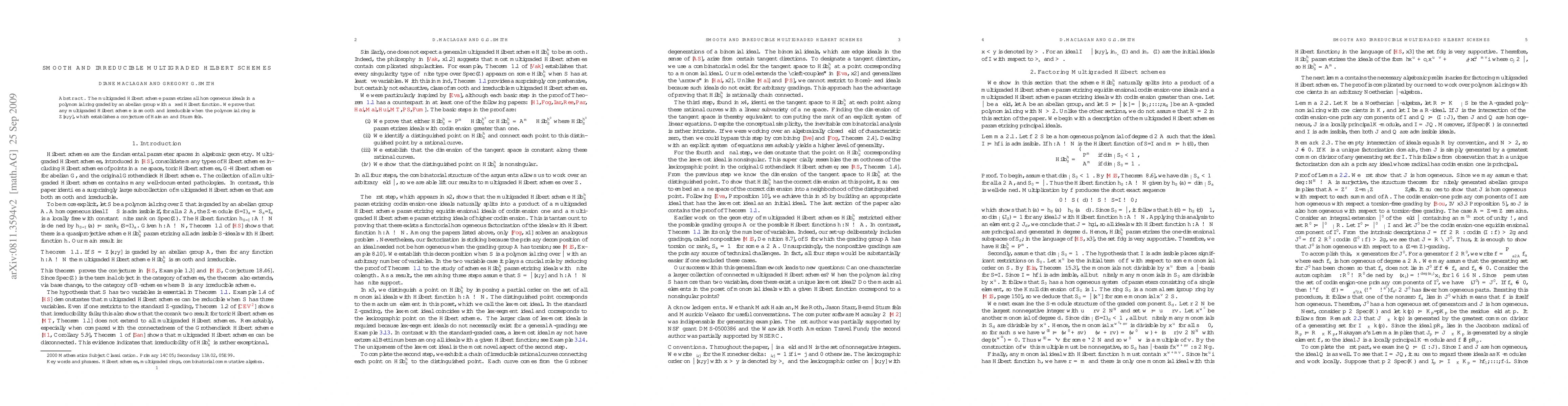 The paper proves that multigraded Hilbert schemes, which parametrize homogeneous ideals in polynomial rings with specified gradings, are both smooth and irreducible when the ring is ZZ[x,y], confirming a conjecture by Haiman and Sturmfels.