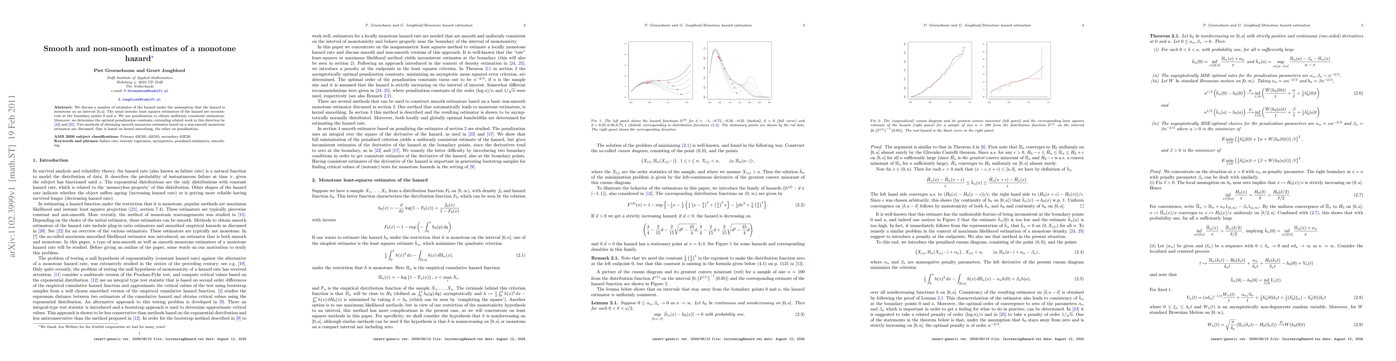 This paper proposes consistent estimators for monotone hazard functions using penalization techniques, addressing the inconsistency of isotonic least squares estimators at boundary points. It also explores optimal penalization constants and methods for smoothing monotone estimates, including kernel smoothing and penalization.