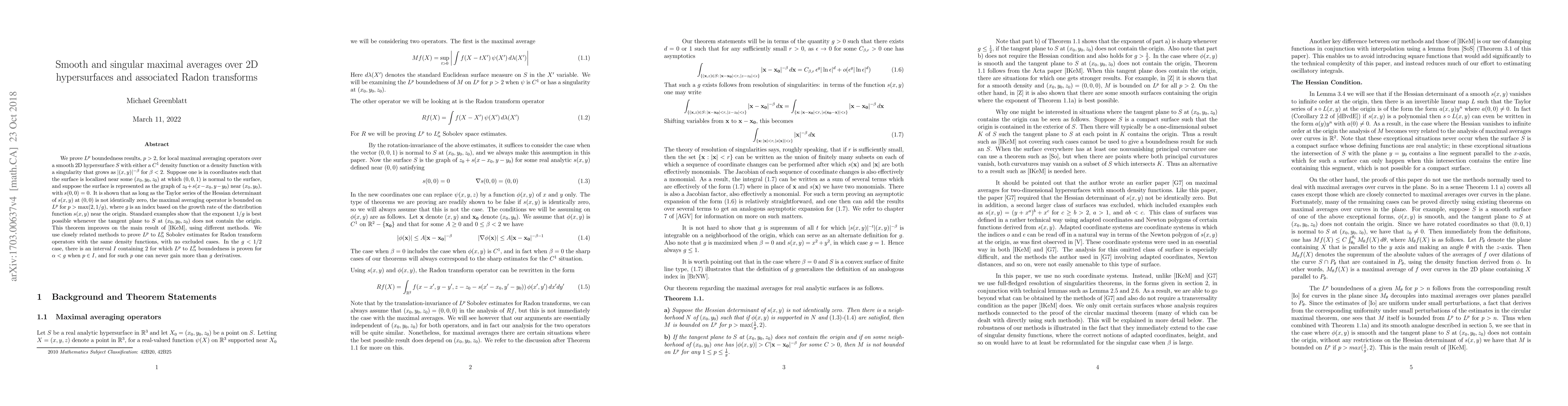 We prove $L^p$ boundedness results, $p > 2$, for local maximal averaging operators over a smooth 2D hypersurface $S$ with either a $C^1$ density function or a density function with a singularity that grows as $|(x,y)|^{-\beta}$ for $\beta < 2$. Suppose one is in coordinates such that the surface is localized near some $(x_0,y_0,z_0)$ at which $(0,0,1)$ is normal to the surface, and suppose the surface is represented as the graph of $z_0 + s(x - x_0, y - y_0)$ near $(x_0,y_0)$, with $s(0,0) = 0$. It is shown that as long as the Taylor series of the Hessian determinant of $s(x,y)$ at $(0,0)$ is not identically zero, the maximal averaging operator is bounded on $L^p$ for $p > \max(2,1/g)$, where $g$ is an index based on the growth rate of the distribution function $s(x,y)$ near the origin. Standard examples show that the exponent $1/g$ is best possible whenever the tangent plane to $S$ at $(x_0,y_0,z_0)$ does not contain the origin. This theorem improves on the main result of [IKeM], using different methods. We use closely related methods prove $L^p$ to $L^p_{\alpha}$ Sobolev estimates for Radon transform operators with the same density functions, with no excluded cases. In the $g < 1/2$ case, there is an interval $I$ containing $2$ for which $L^p$ to $L^p_{\alpha}$ boundedness is proven for $\alpha < g$ when $p \in I$, and for such $p$ one can never gain more than $g$ derivatives.