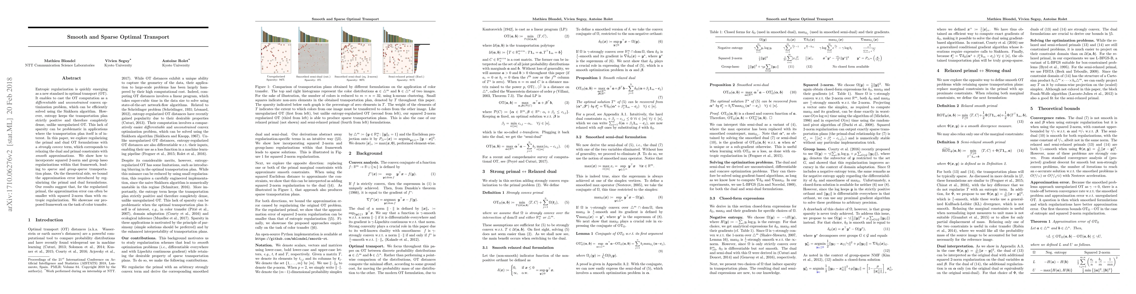 Researchers propose a new method to create sparse optimal transport plans by relaxing constraints with smooth approximations, offering a trade-off between accuracy and sparsity for applications like color transfer.