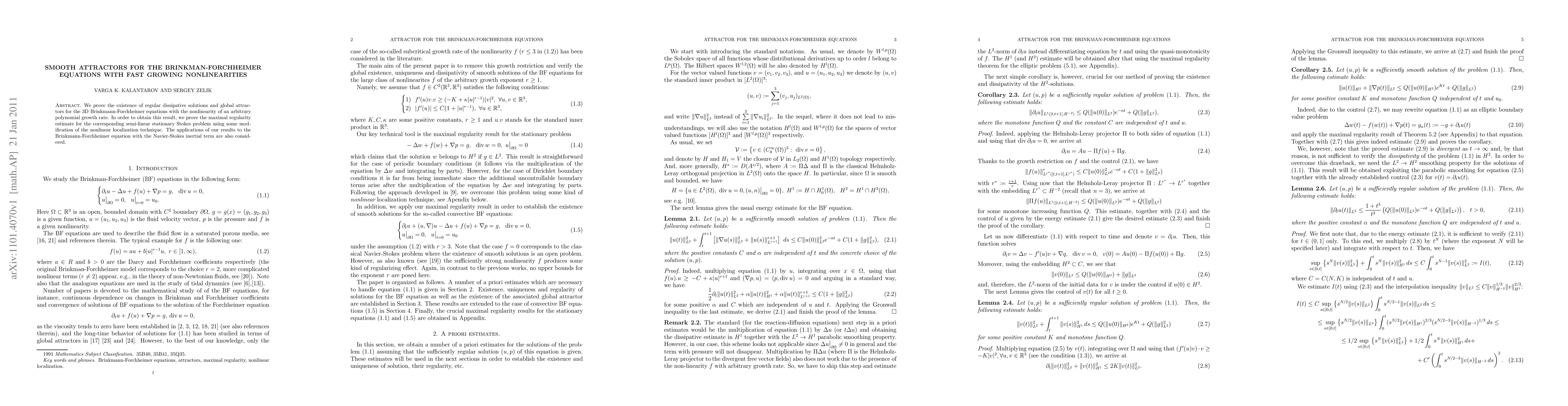 This research proves the existence of regular dissipative solutions and global attractors for complex 3D Brinkman-Forchheimer equations, even with rapidly growing nonlinearities. It achieves this via a modified nonlinear localization technique for maximal regularity estimates in the associated semi-linear stationary Stokes problem, with applications to Brinkman-Forchheimer equations incorporating Navier-Stokes inertial terms.
